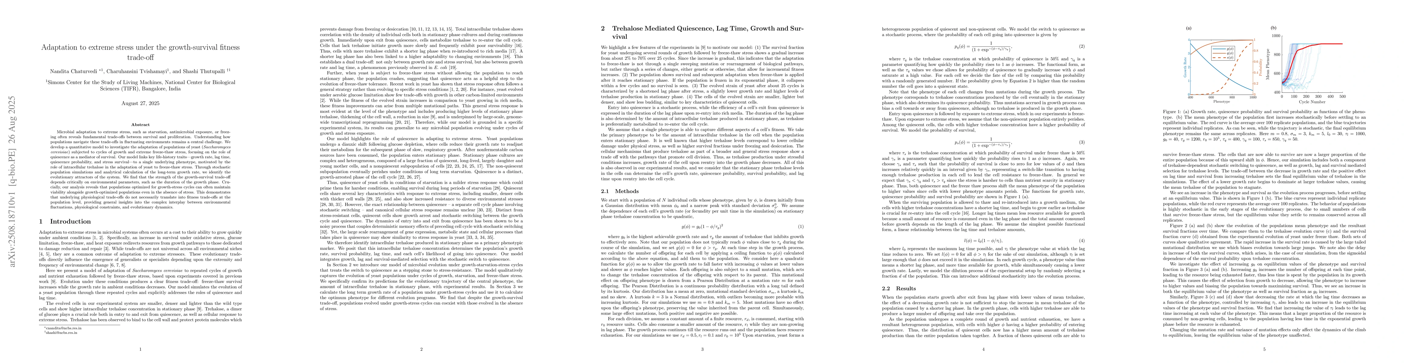 Microbial adaptation to extreme stress, such as starvation, antimicrobial exposure, or freezing often reveals fundamental trade-offs between survival and proliferation. Understanding how populations navigate these trade-offs in fluctuating environments remains a central challenge. We develop a quantitative model to investigate the adaptation of populations of yeast (Saccharomyces cerevisiae) subjected to cycles of growth and extreme freeze-thaw stress, focusing on the role of quiescence as a mediator of survival. Our model links key life-history traits: growth rate, lag time, quiescence probability, and stress survival, to a single underlying phenotype, motivated by the role of intracellular trehalose in the adaptation of yeast to freeze-thaw stress. Through stochastic population simulations and analytical calculation of the long-term growth rate, we identify the evolutionary attractors of the system. We find that the strength of the growth-survival trade-off depends critically on environmental parameters, such as the duration of the growth phase. Crucially, our analysis reveals that populations optimized for growth-stress cycles can often maintain viability alongside growth-optimized populations even in the absence of stress. This demonstrates that underlying physiological trade-offs do not necessarily translate into fitness trade-offs at the population level, providing general insights into the complex interplay between environmental fluctuations, physiological constraints, and evolutionary dynamics.
