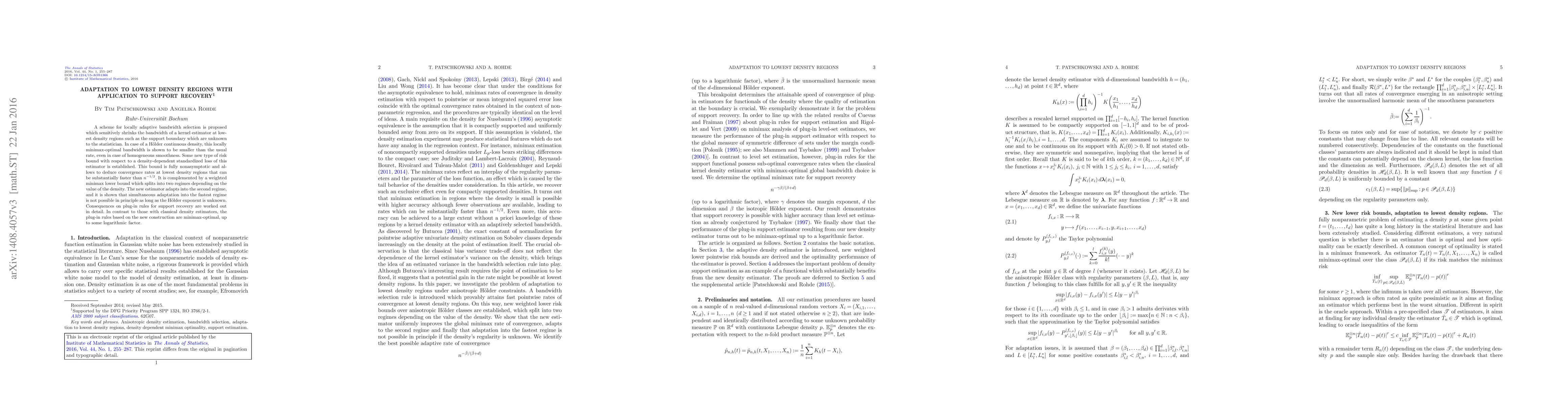 A scheme for locally adaptive bandwidth selection is proposed which sensitively shrinks the bandwidth of a kernel estimator at lowest density regions such as the support boundary which are unknown to the statistician. In case of a H\"{o}lder continuous density, this locally minimax-optimal bandwidth is shown to be smaller than the usual rate, even in case of homogeneous smoothness. Some new type of risk bound with respect to a density-dependent standardized loss of this estimator is established. This bound is fully nonasymptotic and allows to deduce convergence rates at lowest density regions that can be substantially faster than $n^{-1/2}$. It is complemented by a weighted minimax lower bound which splits into two regimes depending on the value of the density. The new estimator adapts into the second regime, and it is shown that simultaneous adaptation into the fastest regime is not possible in principle as long as the H\"{o}lder exponent is unknown. Consequences on plug-in rules for support recovery are worked out in detail. In contrast to those with classical density estimators, the plug-in rules based on the new construction are minimax-optimal, up to some logarithmic factor.