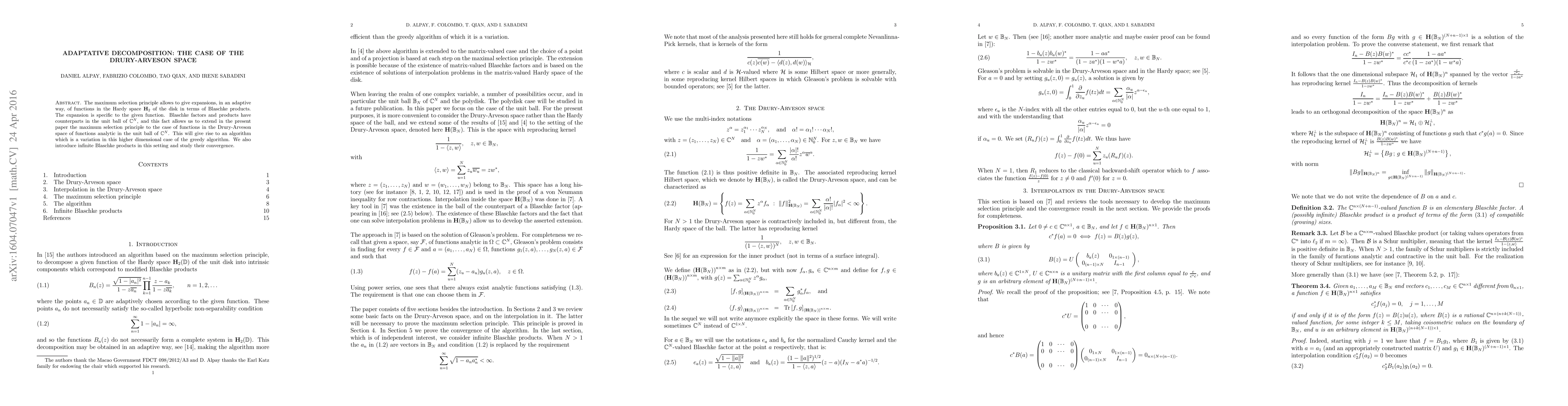 This paper extends the maximum selection principle from the Hardy space $mathbf H_2$ to the Drury-Arveson space, enabling adaptive function expansions using Blaschke products in higher dimensions. It also introduces infinite Blaschke products and examines their convergence, leading to a variation of the greedy algorithm in this context.