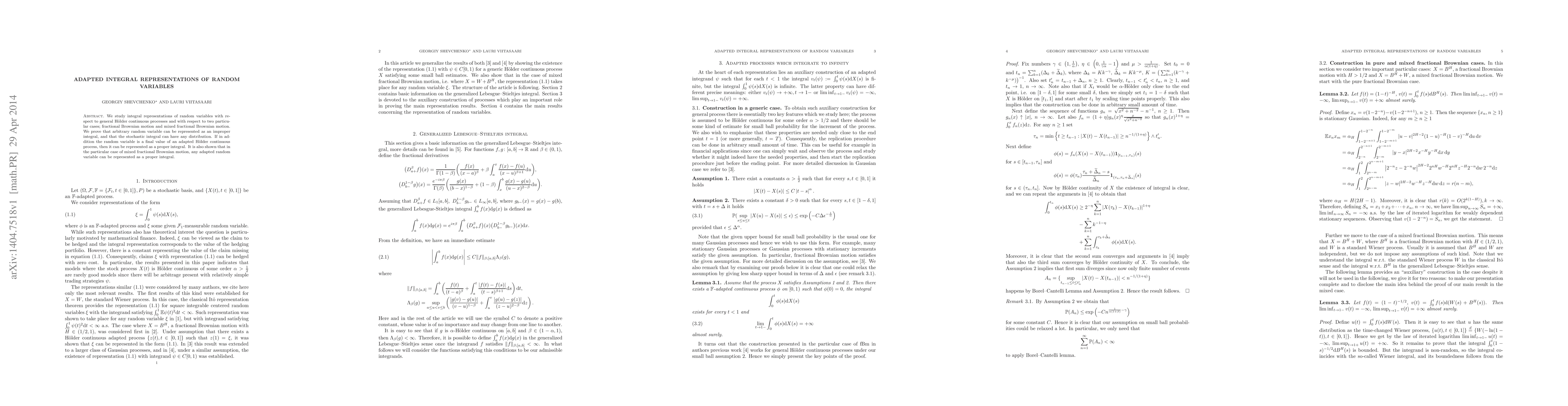 A study shows that random variables can be represented as integrals of H"older continuous processes, allowing for more flexible modeling of stochastic phenomena. This breakthrough enables the representation of arbitrary distributions and provides a powerful tool for analyzing adapted random variables.