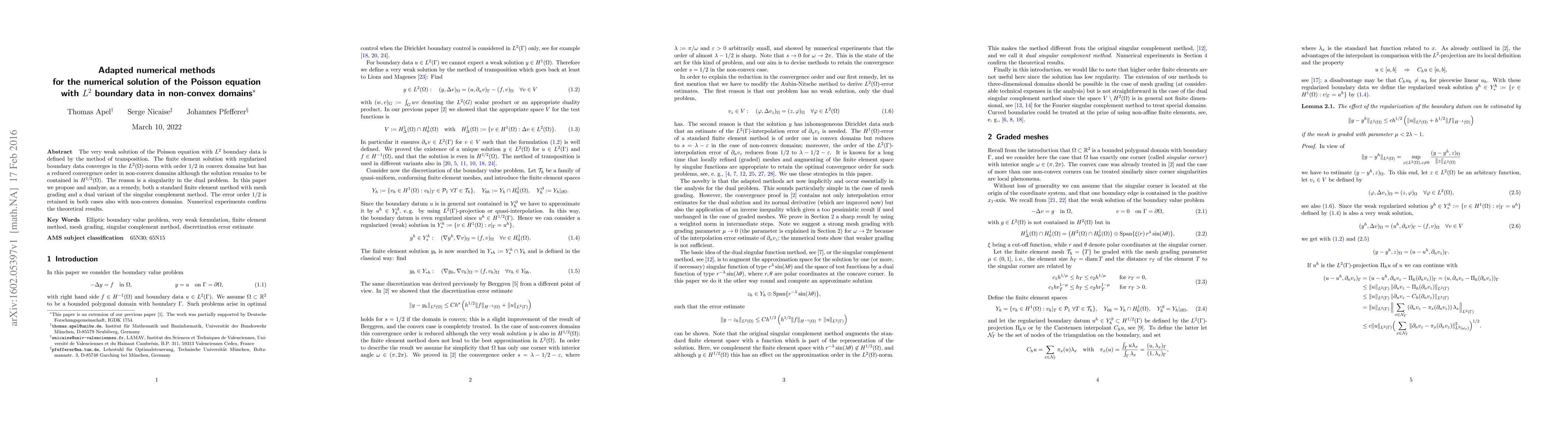 The very weak solution of the Poisson equation with $L^2$ boundary data is defined by the method of transposition. The finite element solution with regularized boundary data converges in the $L^2(\Omega)$-norm with order $1/2$ in convex domains but has a reduced convergence order in non-convex domains although the solution remains to be contained in $H^{1/2}(\Omega)$. The reason is a singularity in the dual problem. In this paper we propose and analyze, as a remedy, both a standard finite element method with mesh grading and a dual variant of the singular complement method. The error order 1/2 is retained in both cases also with non-convex domains. Numerical experiments confirm the theoretical results.