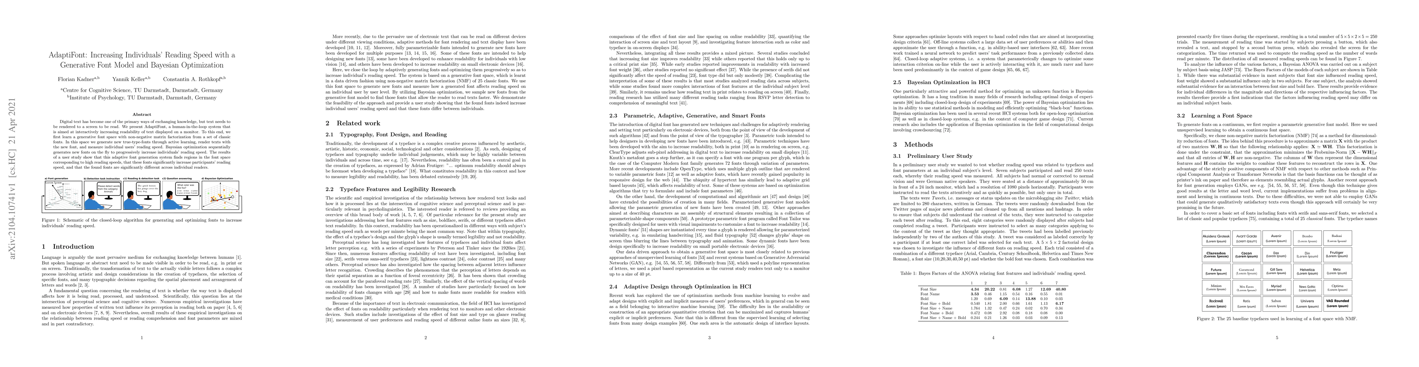 AdaptiFont is a system that uses generative font modeling and Bayesian optimization to adaptively increase individual reading speeds by generating new fonts tailored to each user's preferences. Results from a user study indicate that these adaptively generated fonts significantly enhance reading speed and vary considerably among different users.