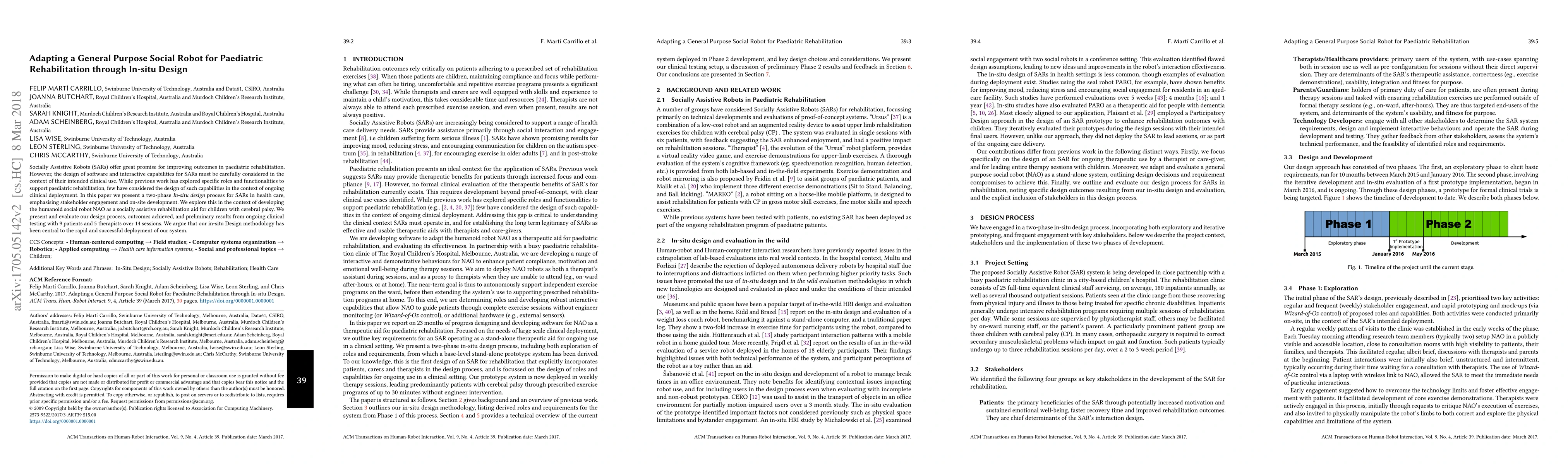 A two-phase in-situ design process for socially assistive robots improved paediatric rehabilitation outcomes, using stakeholder engagement and on-site development with a humanoid robot like NAO. The approach enabled rapid and successful deployment of the system through effective clinical testing and therapist feedback.