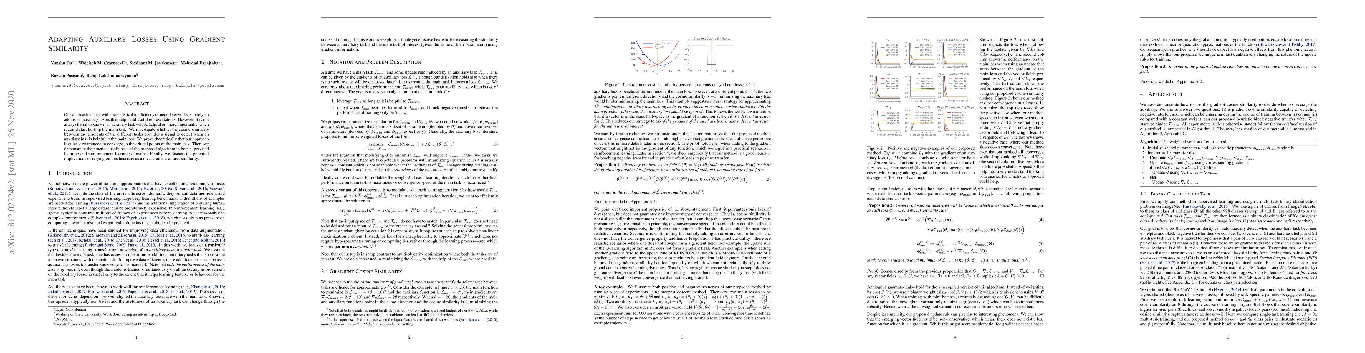 Researchers propose using cosine similarity between task gradients to adapt auxiliary losses for neural networks, ensuring convergence to main task critical points with practical use in multi-task learning and reinforcement learning.