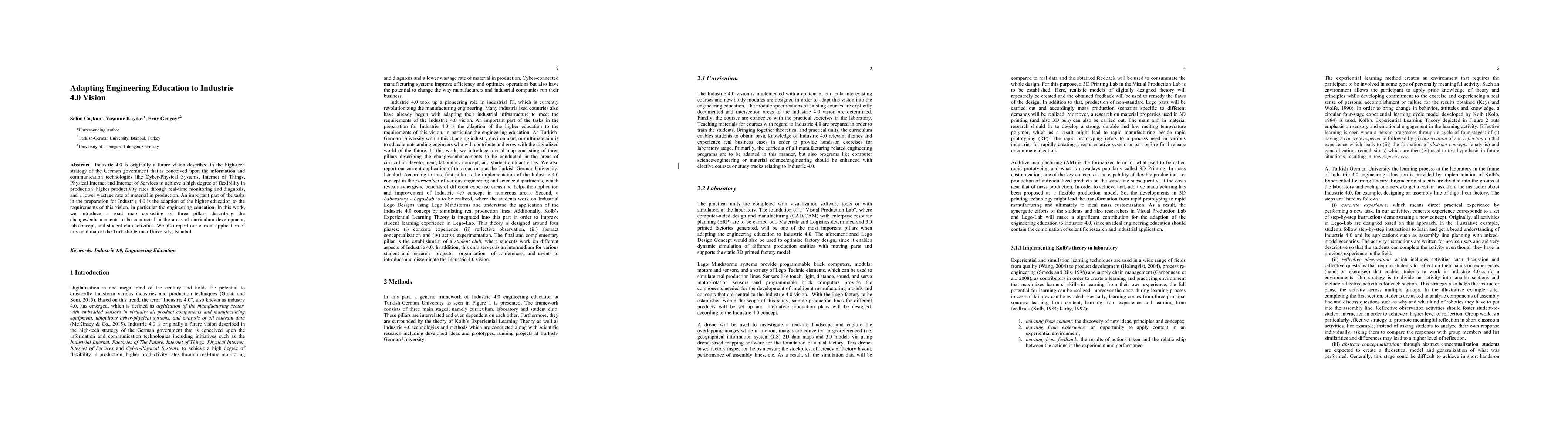 This paper introduces a roadmap for adapting engineering education to Industrie 4.0 vision, focusing on curriculum development, lab concepts, and student club activities at Turkish-German University, Istanbul.