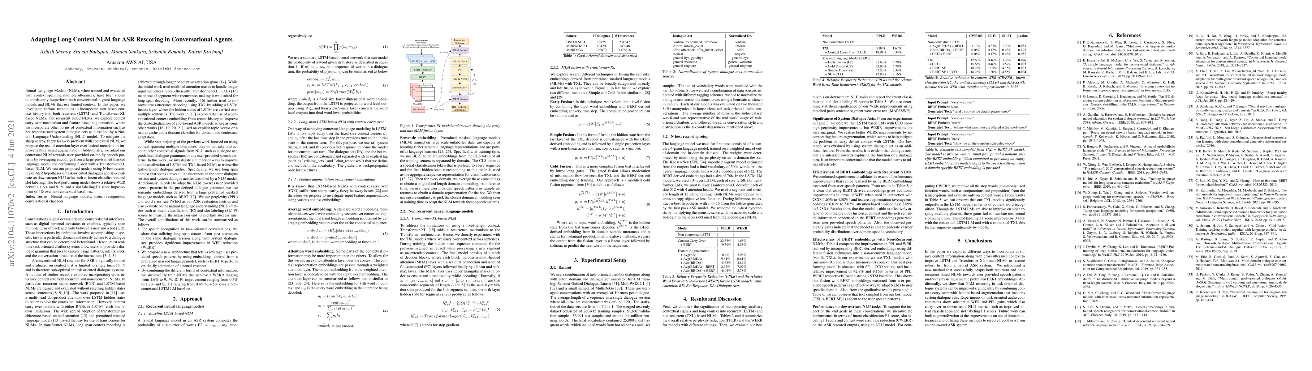 A new approach to improving speech recognition in conversational agents is proposed, using long context neural language models that adapt to user speech patterns.