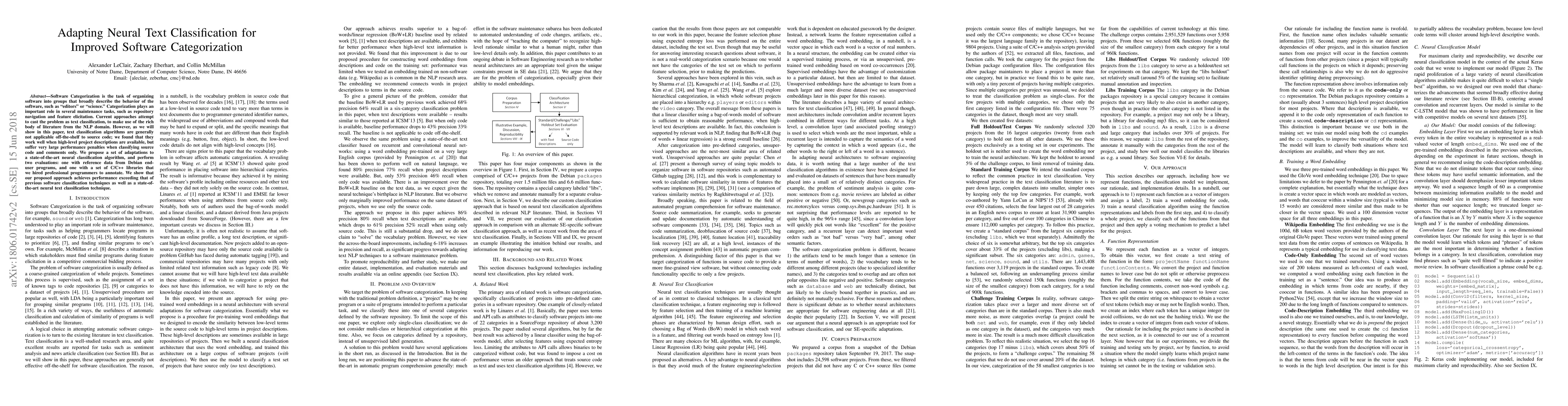 Researchers developed a new approach to categorize software by adapting a neural text classification algorithm to improve its performance on source code and comments, achieving better results than existing methods.