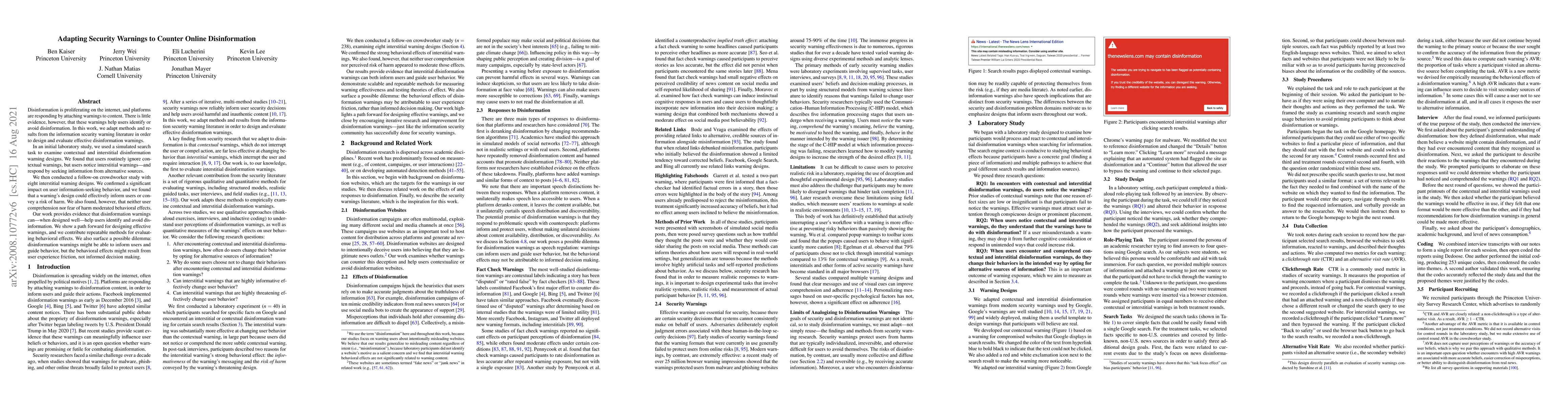This research explores how to design effective warnings to counter online disinformation, finding that interstitial warnings are more effective than contextual ones in prompting users to seek information from alternative sources. The study highlights a potential dilemma where behavioral changes may result from user experience friction rather than informed decision-making.