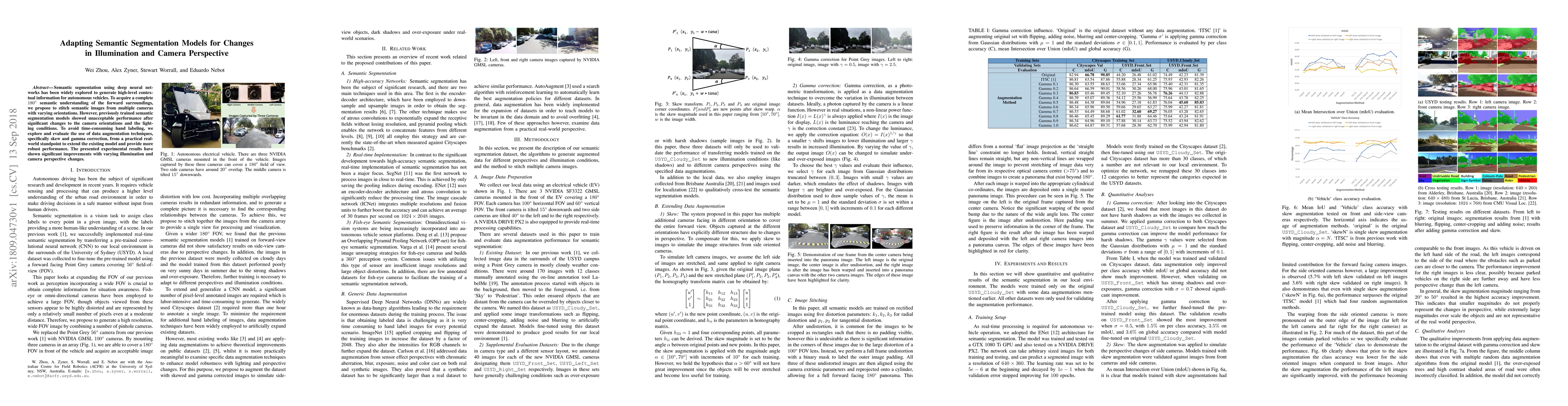 This paper proposes using data augmentation techniques like skew and gamma correction to adapt semantic segmentation models for changes in illumination and camera perspective, achieving significant improvements in model robustness without extensive manual labeling. Experimental results demonstrate enhanced performance under varying lighting and orientation conditions.