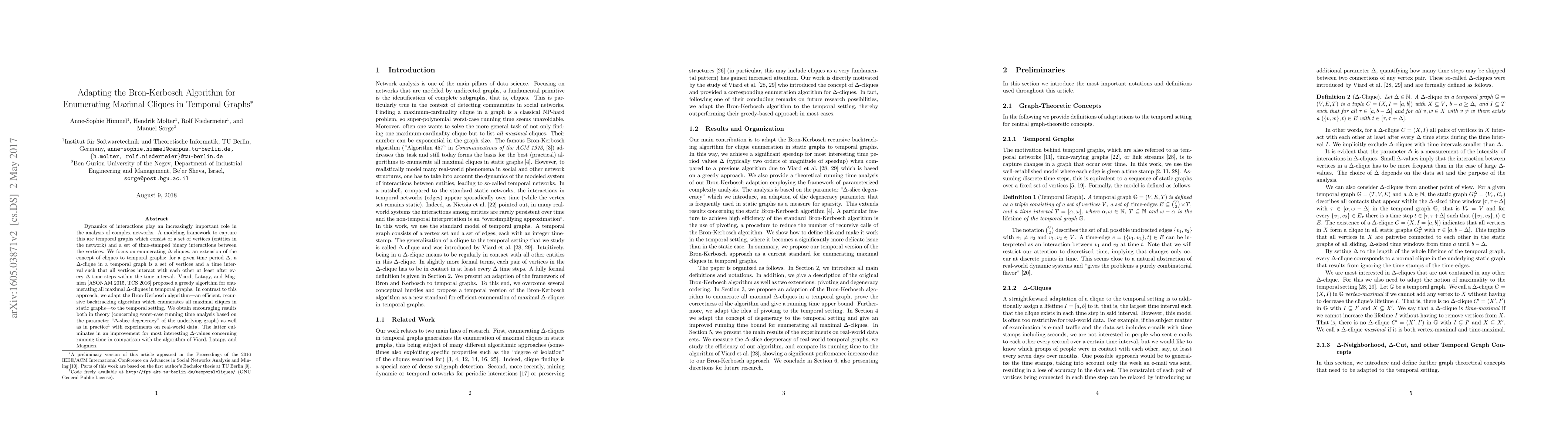 This paper adapts the Bron-Kerbosch algorithm for enumerating maximal delta-cliques in temporal graphs, extending the concept of cliques to dynamic networks. The adapted algorithm shows improved performance over existing methods, both theoretically and experimentally, for various delta-values.