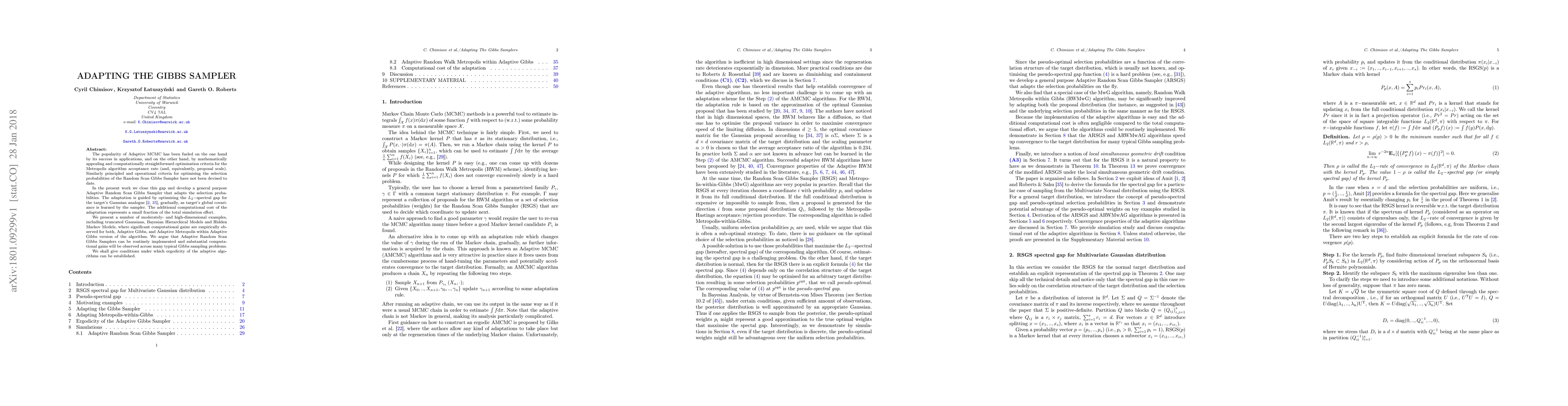 This paper develops an Adaptive Random Scan Gibbs Sampler that optimizes selection probabilities to improve efficiency, guided by the $L_2-$spectral gap for the target's Gaussian analogue. Empirical results show significant computational gains across various applications, suggesting routine implementation potential.