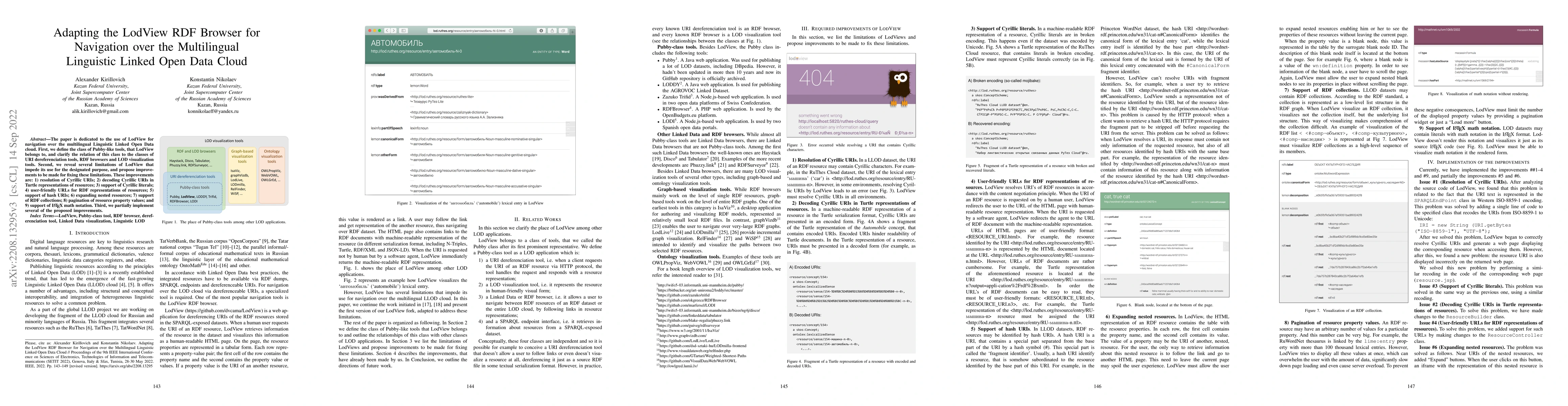 The paper discusses adapting LodView, an RDF browser, for navigating the multilingual Linguistic Linked Open Data cloud, identifying limitations and proposing enhancements, including support for Cyrillic URIs and pagination of resource property values, among others. Several of these improvements are partially implemented.