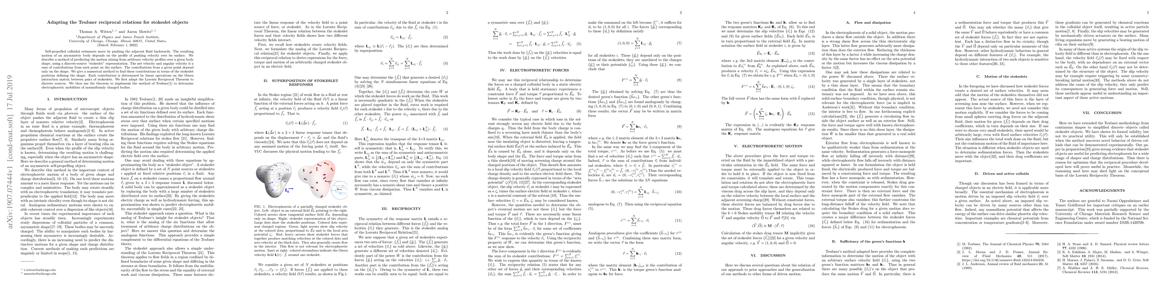 Self-propelled colloidal swimmers move by pushing the adjacent fluid backwards. The resulting motion of an asymmetric body depends on the profile of pushing velocity over its surface. We describe a method of predicting the motion arising from arbitrary velocity profiles over a given body shape, using a discrete-source "stokeslet" representation. The net velocity and angular velocity is a sum of contributions from each point on the surface. The contributions from a given point depend only on the shape. We give a numerical method to find these contributions in terms of the stokeslet positions defining the shape. Each contribution is determined by linear operations on the Oseen interaction matrix between pairs of stokeslets. We first adapt the Lorentz Reciprocal Theorem to discrete sources. We then use the theorem to implement the method of Teubner[1] to determine electrophoretic mobilities of nonuniformly charged bodies.