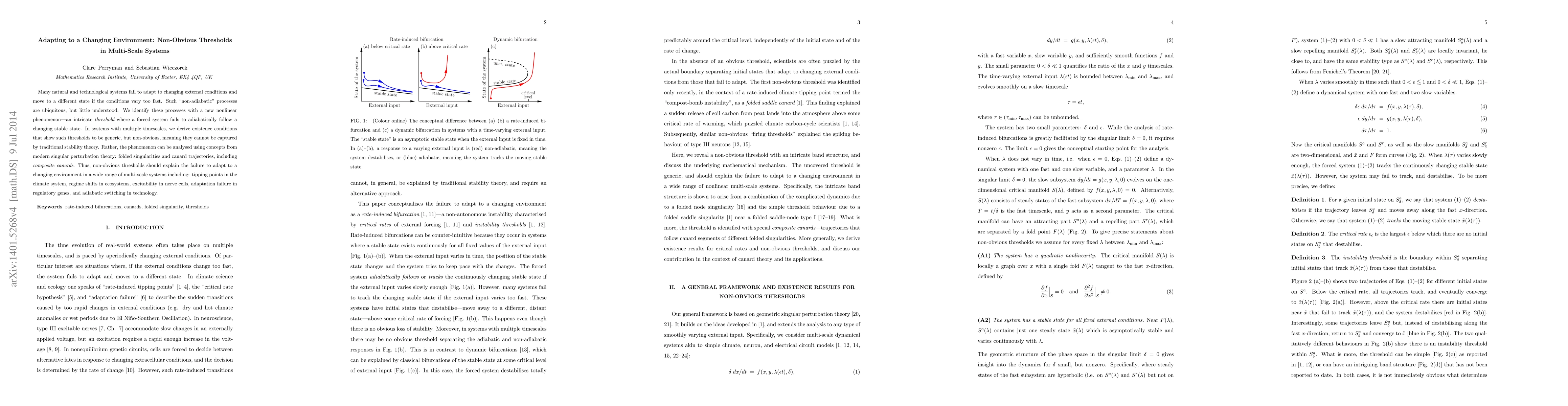 Many natural and technological systems fail to adapt to changing external conditions and move to a different state if the conditions vary too fast. Such "non-adiabatic" processes are ubiquitous, but little understood. We identify these processes with a new nonlinear phenomenon---an intricate threshold where a forced system fails to adiabatically follow a changing stable state. In systems with multiple time-scales such thresholds are generic, but non-obvious, meaning they cannot be captured by traditional stability theory. Rather, the phenomenon can be analysed using concepts from modern singular perturbation theory: folded singularities and canard trajectories, including composite canards. Thus, non-obvious thresholds should explain the failure to adapt to a changing environment in a wide range of multi-scale systems including: tipping points in the climate system, regime shifts in ecosystems, excitability in nerve cells, adaptation failure in regulatory genes, and adiabatic switching in technology.