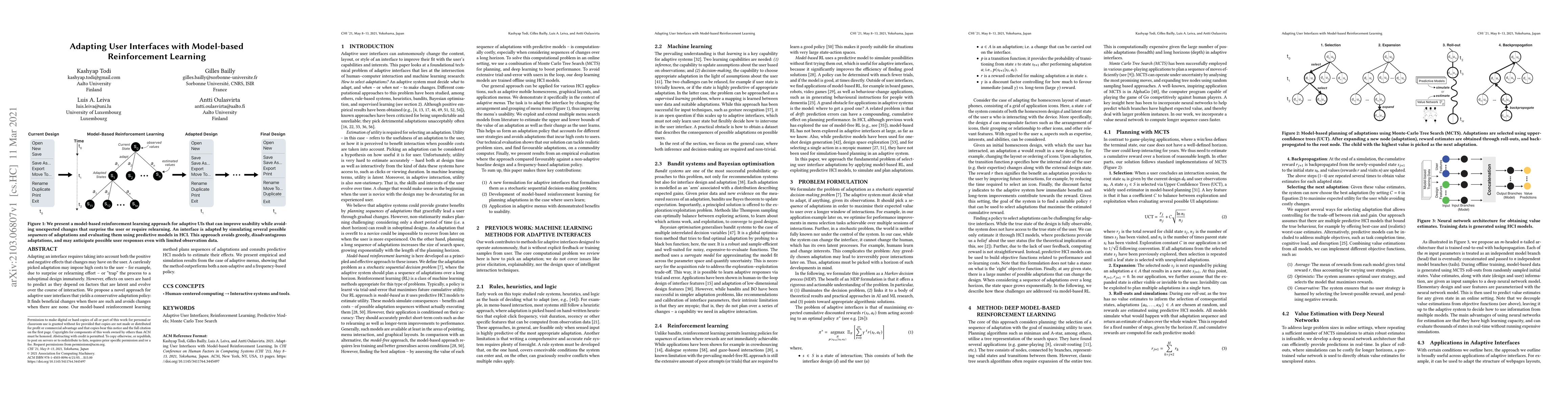 Application of model-based reinforcement learning to user interface adaptation, enabling adaptive optimization and personalized interfaces
