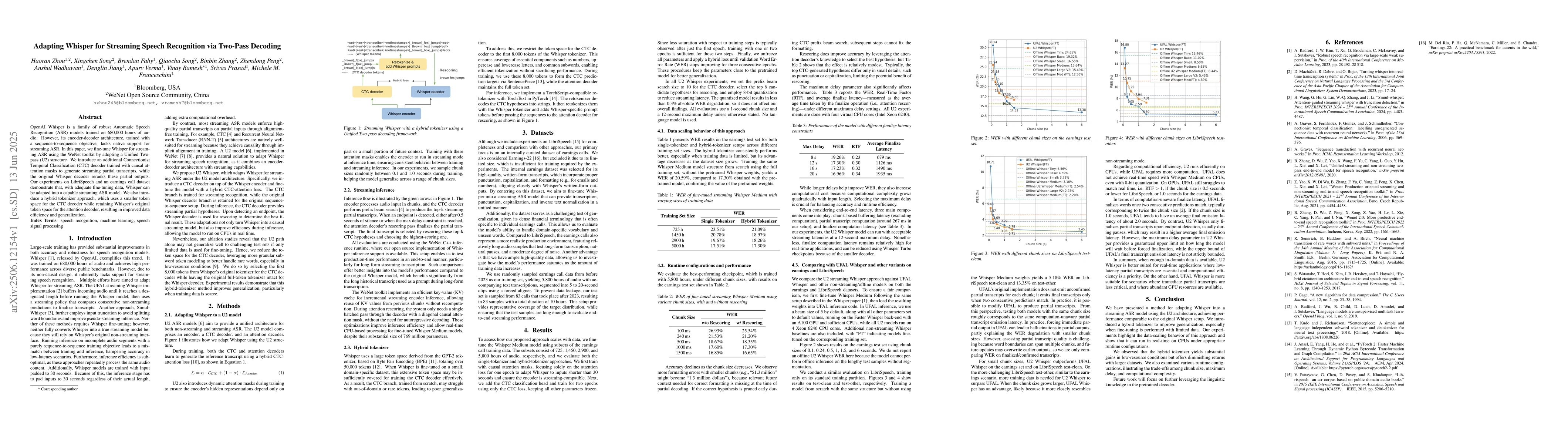 OpenAI Whisper is a family of robust Automatic Speech Recognition (ASR) models trained on 680,000 hours of audio. However, its encoder-decoder architecture, trained with a sequence-to-sequence objective, lacks native support for streaming ASR. In this paper, we fine-tune Whisper for streaming ASR using the WeNet toolkit by adopting a Unified Two-pass (U2) structure. We introduce an additional Connectionist Temporal Classification (CTC) decoder trained with causal attention masks to generate streaming partial transcripts, while the original Whisper decoder reranks these partial outputs. Our experiments on LibriSpeech and an earnings call dataset demonstrate that, with adequate fine-tuning data, Whisper can be adapted into a capable streaming ASR model. We also introduce a hybrid tokenizer approach, which uses a smaller token space for the CTC decoder while retaining Whisper's original token space for the attention decoder, resulting in improved data efficiency and generalization.