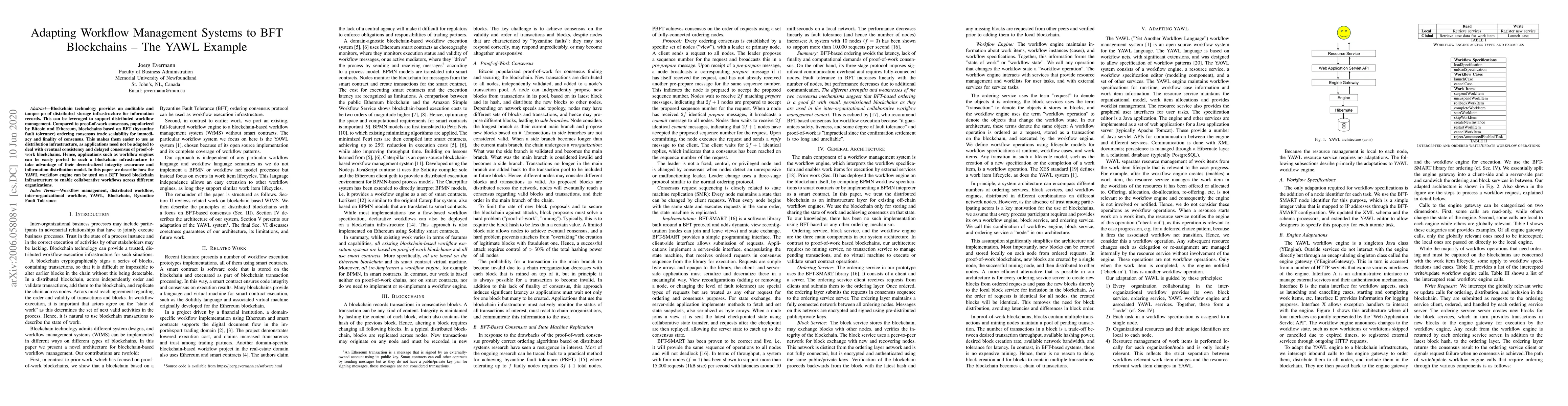 This paper demonstrates how to adapt YAWL workflow engine to BFT blockchain infrastructure, enabling collaborative workflows across organizations with decentralized integrity assurance. It leverages BFT blockchains for scalability and immediacy of consensus, improving usability over proof-of-work blockchains.