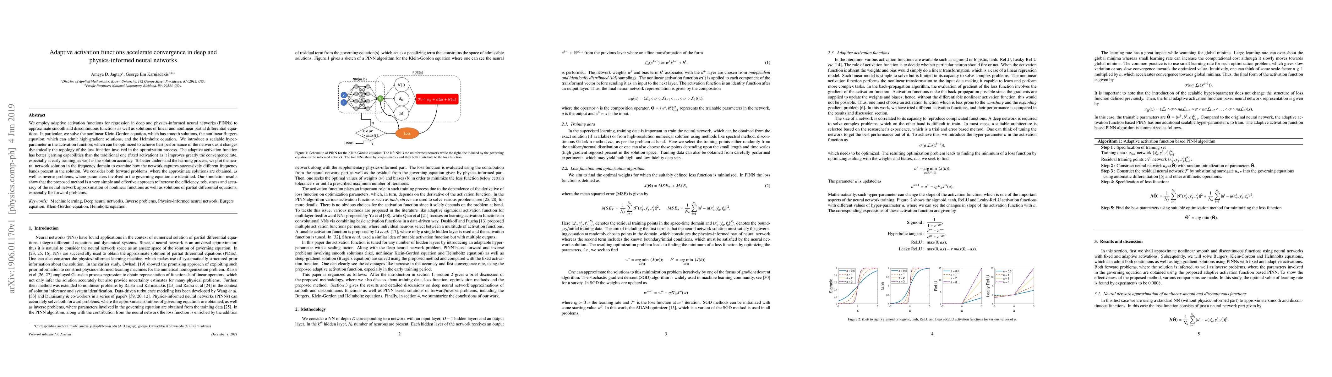 This paper proposes adaptive activation functions to enhance the convergence and accuracy of deep and physics-informed neural networks (PINNs) for solving various partial differential equations, including the nonlinear Klein-Gordon, Burgers, and Helmholtz equations. The adaptive activation function dynamically adjusts its topology, significantly improving convergence rates and solution accuracy, especially during early training.