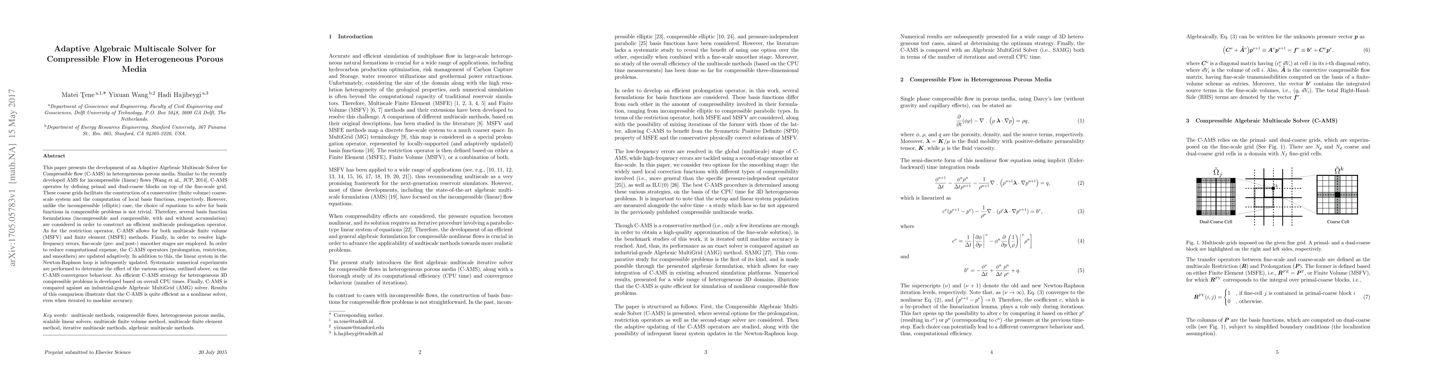 This paper develops an Adaptive Algebraic Multiscale Solver (C-AMS) for compressible flow in heterogeneous porous media, employing adaptive coarse-scale systems and multiscale methods to efficiently resolve high-frequency errors. Comparative results show C-AMS's efficiency against an industrial-grade Algebraic MultiGrid solver.