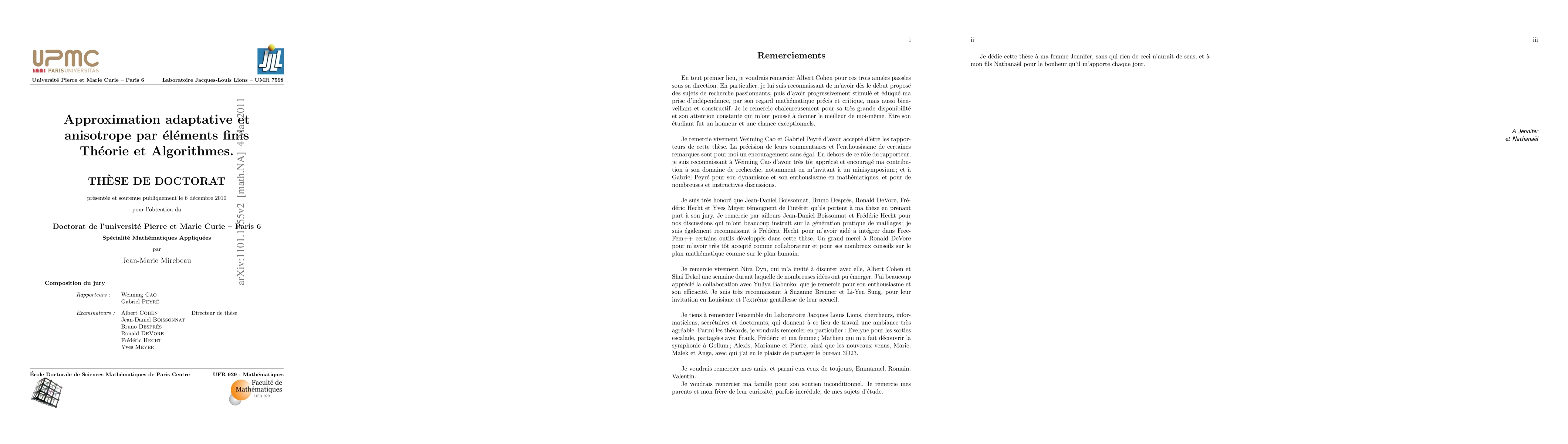This paper explores adaptive and anisotropic finite element methods for function approximation, focusing on mesh refinement to enhance accuracy. It investigates the behavior of approximation error in smooth functions and seeks to understand the classes of functions that naturally relate to optimal mesh adaptation, proposing a potential replacement for the optimization problem and exploring the feasibility of a near-optimal hierarchical refinement procedure.