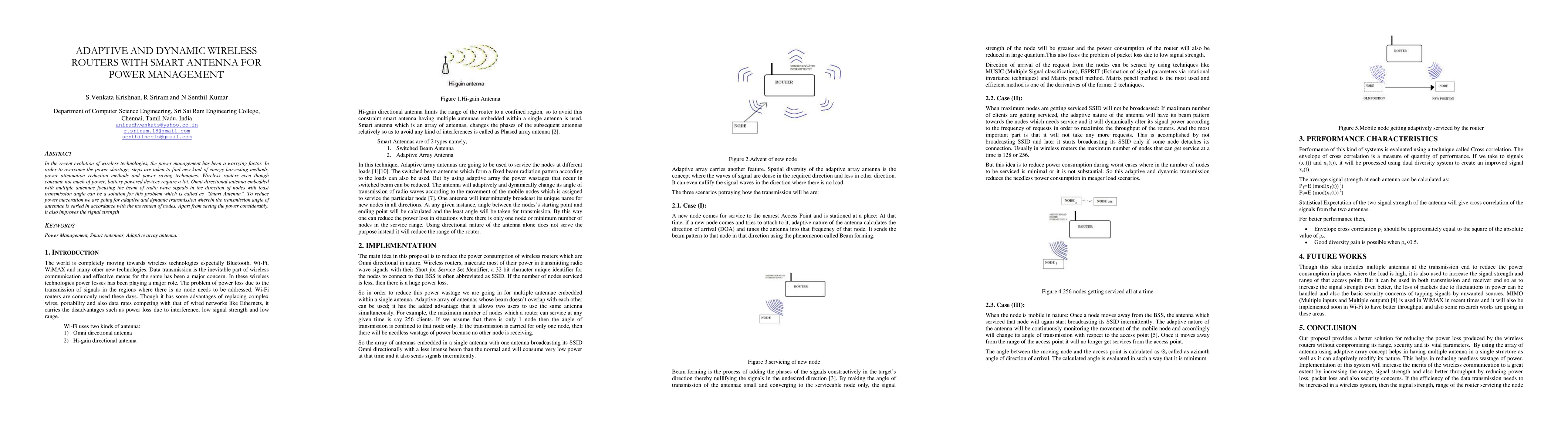 This paper explores adaptive and dynamic wireless routers equipped with smart antennas to manage power efficiently. By dynamically adjusting the transmission angle of the antenna in response to node movement, the system aims to reduce power consumption and enhance signal strength, addressing the power management challenges in wireless technologies.