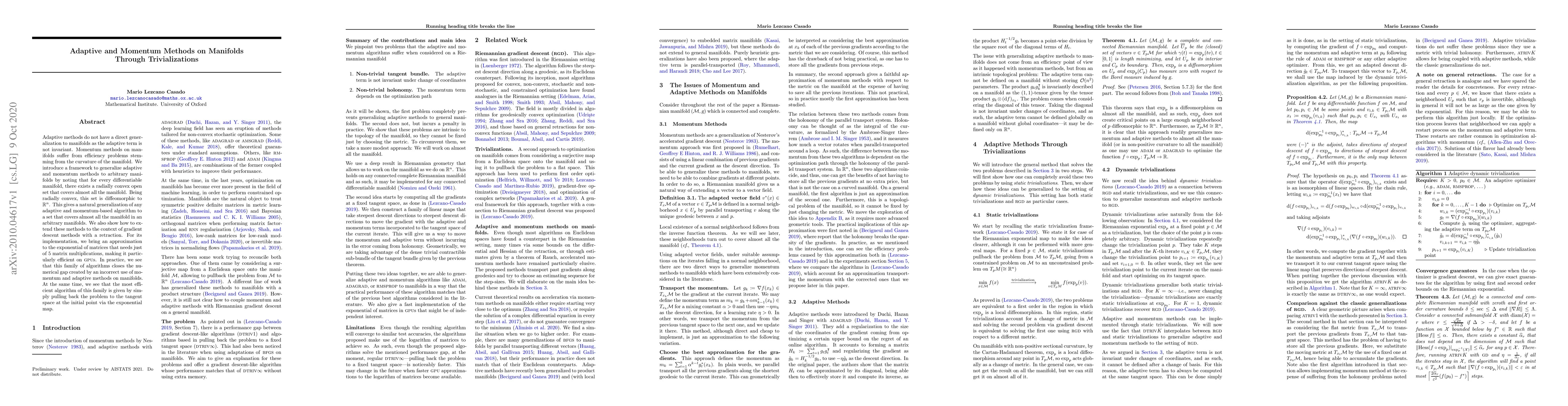 Adaptive methods do not have a direct generalization to manifolds as the adaptive term is not invariant. Momentum methods on manifolds suffer from efficiency problems stemming from the curvature of the manifold. We introduce a framework to generalize adaptive and momentum methods to arbitrary manifolds by noting that for every differentiable manifold, there exists a radially convex open set that covers almost all the manifold. Being radially convex, this set is diffeomorphic to $\mathbb{R}^n$. This gives a natural generalization of any adaptive and momentum-based algorithm to a set that covers almost all the manifold in an arbitrary manifolds. We also show how to extend these methods to the context of gradient descent methods with a retraction. For its implementation, we bring an approximation to the exponential of matrices that needs just of 5 matrix multiplications, making it particularly efficient on GPUs. In practice, we see that this family of algorithms closes the numerical gap created by an incorrect use of momentum and adaptive methods on manifolds. At the same time, we see that the most efficient algorithm of this family is given by simply pulling back the problem to the tangent space at the initial point via the exponential map.