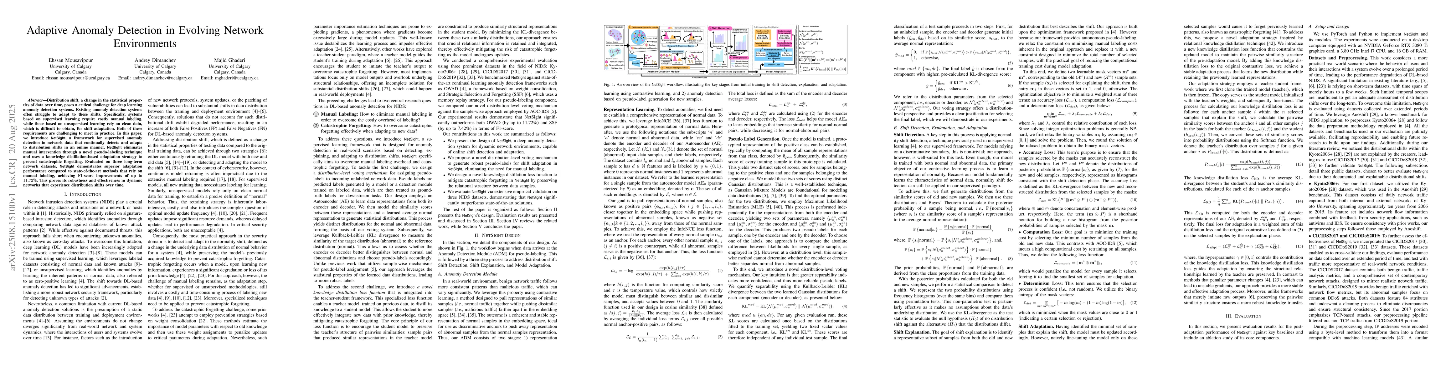 Distribution shift, a change in the statistical properties of data over time, poses a critical challenge for deep learning anomaly detection systems. Existing anomaly detection systems often struggle to adapt to these shifts. Specifically, systems based on supervised learning require costly manual labeling, while those based on unsupervised learning rely on clean data, which is difficult to obtain, for shift adaptation. Both of these requirements are challenging to meet in practice. In this paper, we introduce NetSight, a framework for supervised anomaly detection in network data that continually detects and adapts to distribution shifts in an online manner. NetSight eliminates manual intervention through a novel pseudo-labeling technique and uses a knowledge distillation-based adaptation strategy to prevent catastrophic forgetting. Evaluated on three long-term network datasets, NetSight demonstrates superior adaptation performance compared to state-of-the-art methods that rely on manual labeling, achieving F1-score improvements of up to 11.72%. This proves its robustness and effectiveness in dynamic networks that experience distribution shifts over time.