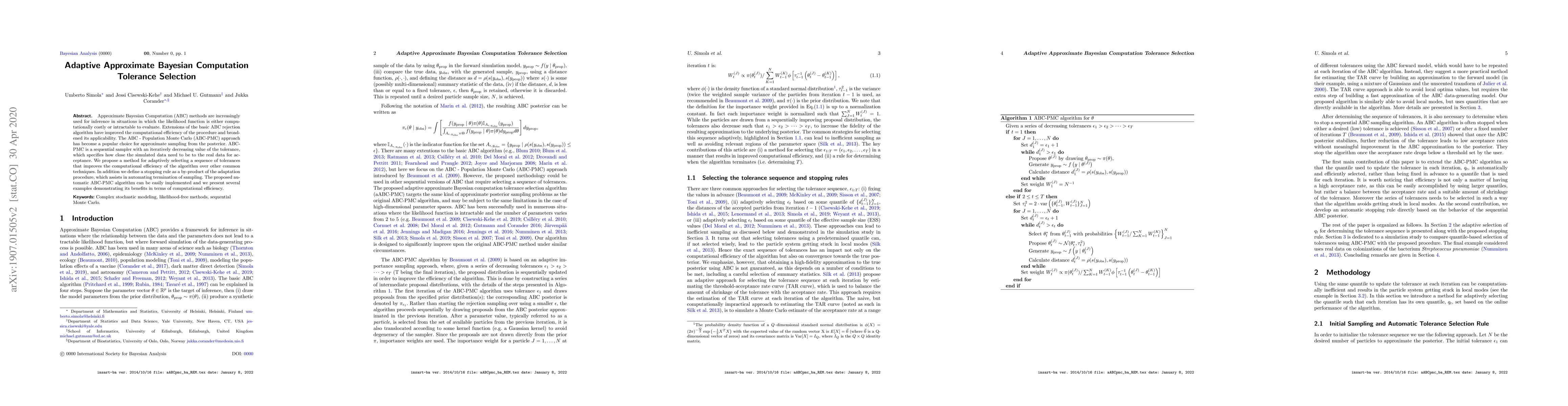 Researchers propose an adaptive method for Approximate Bayesian Computation (ABC) that improves computational efficiency by dynamically adjusting tolerances for simulated data acceptance. This adaptation enables automation of the sampling process, leading to faster and more efficient inference.
