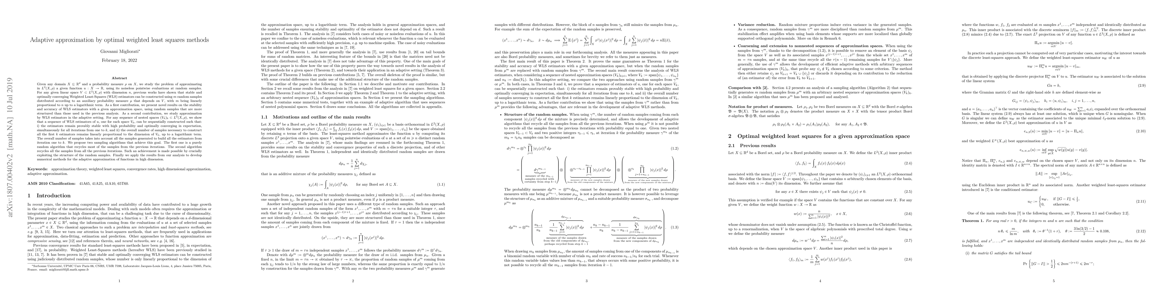This paper explores the adaptive approximation of functions using optimal weighted least squares (WLS) estimators. It introduces novel stability and accuracy results for WLS estimators with structured random samples and proposes adaptive WLS methods that maintain stability and optimal convergence while minimizing the number of samples required.