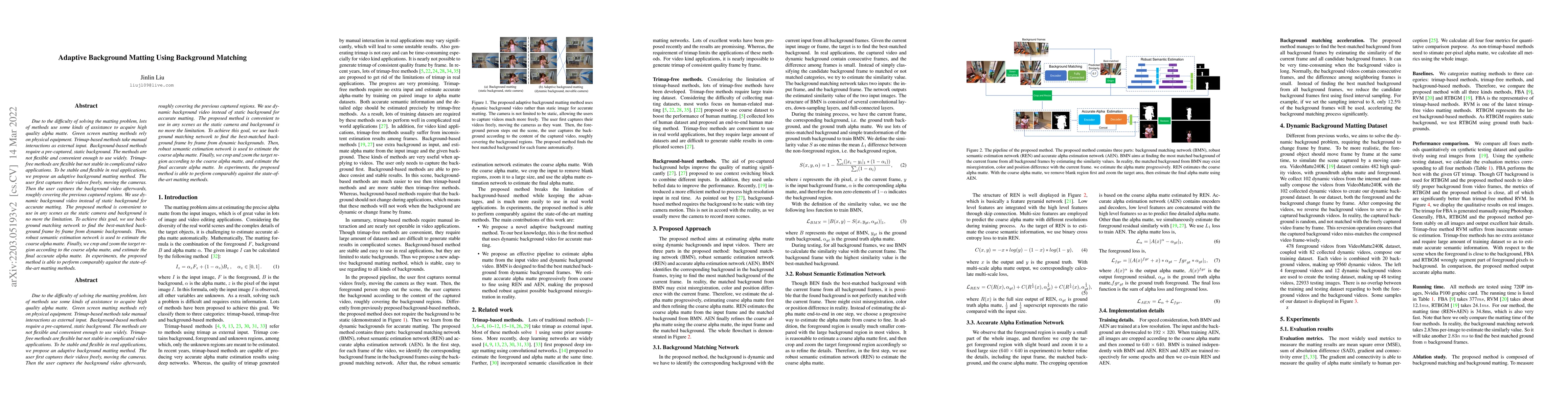The paper proposes an adaptive background matting method that uses dynamic background videos to achieve accurate matting without the need for static cameras or pre-captured backgrounds. The method employs a background matching network and a robust semantic estimation network to generate an accurate alpha matte from freely captured video sequences.