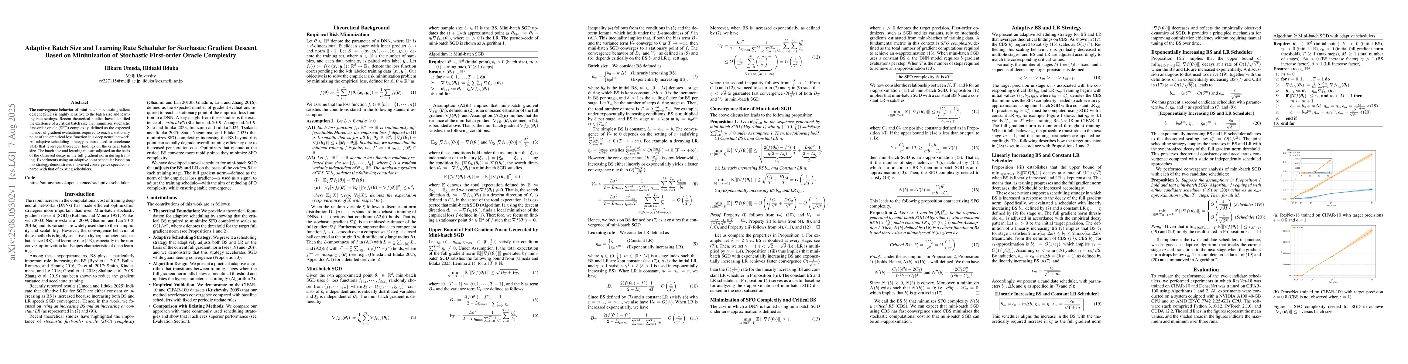 The convergence behavior of mini-batch stochastic gradient descent (SGD) is highly sensitive to the batch size and learning rate settings. Recent theoretical studies have identified the existence of a critical batch size that minimizes stochastic first-order oracle (SFO) complexity, defined as the expected number of gradient evaluations required to reach a stationary point of the empirical loss function in a deep neural network. An adaptive scheduling strategy is introduced to accelerate SGD that leverages theoretical findings on the critical batch size. The batch size and learning rate are adjusted on the basis of the observed decay in the full gradient norm during training. Experiments using an adaptive joint scheduler based on this strategy demonstrated improved convergence speed compared with that of existing schedulers.