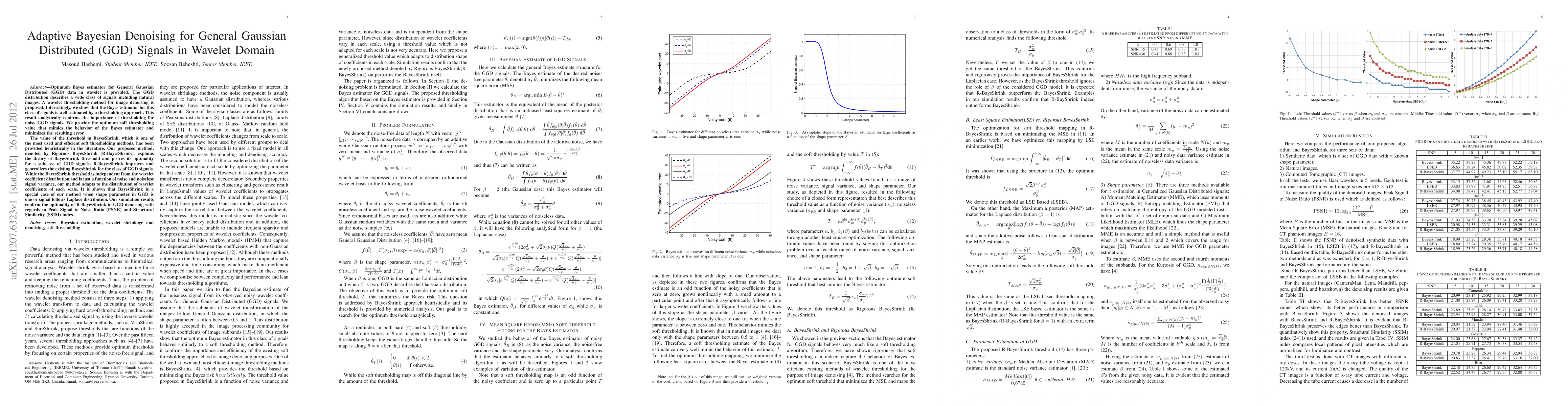 This paper proposes an adaptive Bayesian denoising method for General Gaussian Distributed (GGD) signals in the wavelet domain, introducing Rigorous BayesShrink (R-BayesShrink) to optimize the thresholding value. R-BayesShrink adapts to the distribution of wavelet coefficients, improving upon the heuristic BayesShrink method and demonstrating superior performance in denoising GGD signals based on PSNR and SSIM.