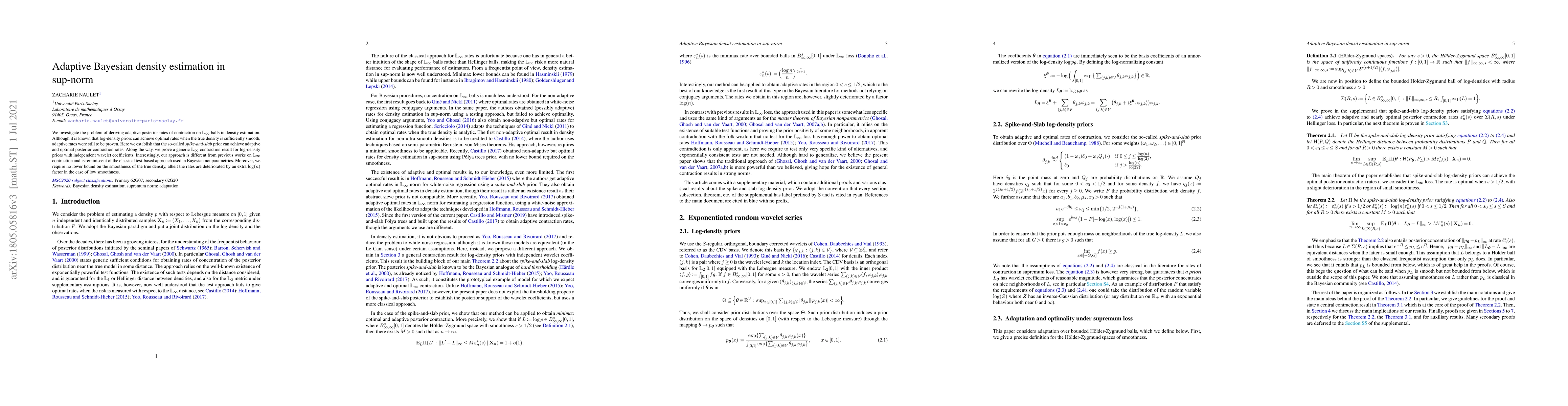 We investigate the problem of deriving adaptive posterior rates of contraction on $\mathbb{L}^{\infty}$ balls in density estimation. Although it is known that log-density priors can achieve optimal rates when the true density is sufficiently smooth, adaptive rates were still to be proven. Here we establish that the so-called spike-and-slab prior can achieve adaptive and optimal posterior contraction rates. Along the way, we prove a generic $\mathbb{L}^{\infty}$ contraction result for log-density priors with independent wavelet coefficients. Interestingly, our approach is different from previous works on $\mathbb{L}^{\infty}$ contraction and is reminiscent of the classical test-based approach used in Bayesian nonparametrics. Moreover, we require no lower bound on the smoothness of the true density, albeit the rates are deteriorated by an extra $\log(n)$ factor in the case of low smoothness.