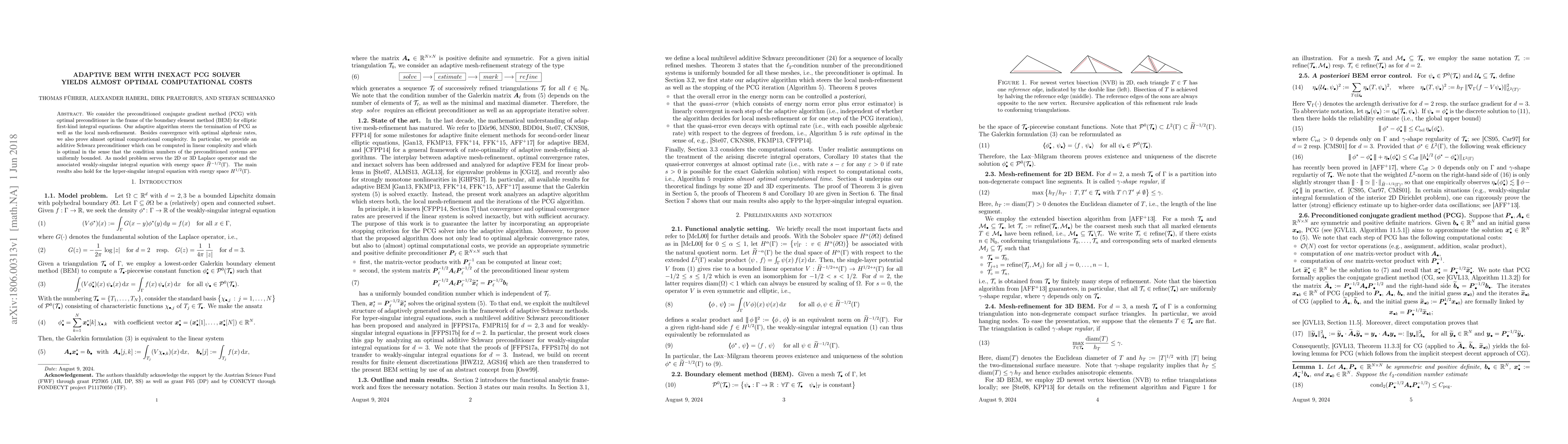This paper proposes an adaptive boundary element method (BEM) using an inexact preconditioned conjugate gradient (PCG) solver for elliptic first-kind integral equations. The adaptive algorithm optimizes both PCG termination and local mesh refinement, achieving almost optimal computational complexity with an additive Schwarz preconditioner.
