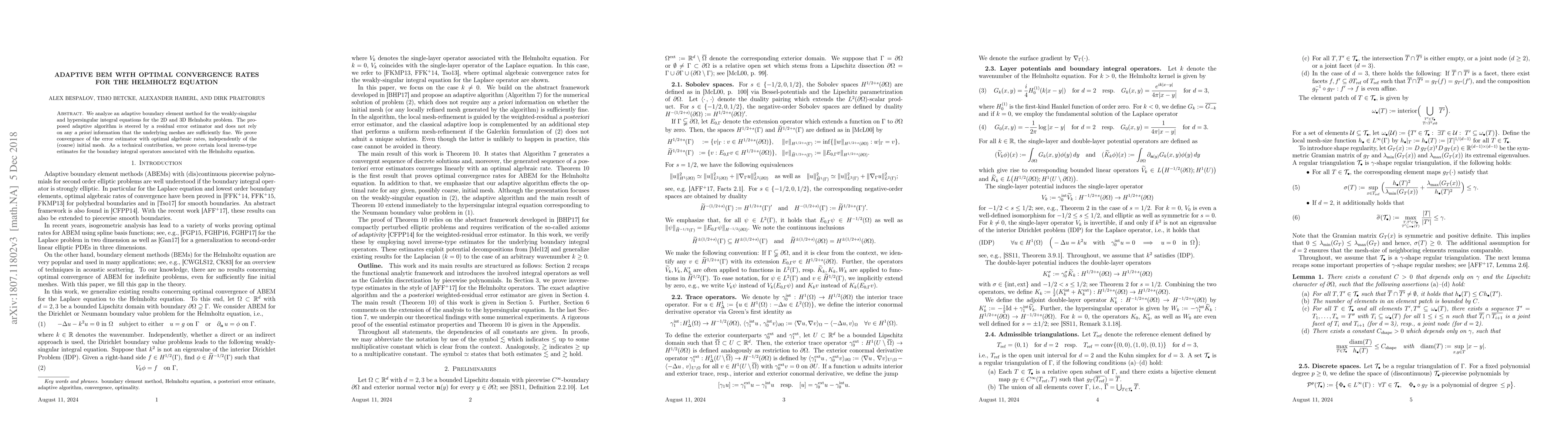 This paper proposes an adaptive boundary element method for solving the Helmholtz equation, demonstrating optimal convergence rates through a residual error estimator. The method does not require prior knowledge of mesh quality and proves convergence with optimal algebraic rates, independent of the initial mesh.