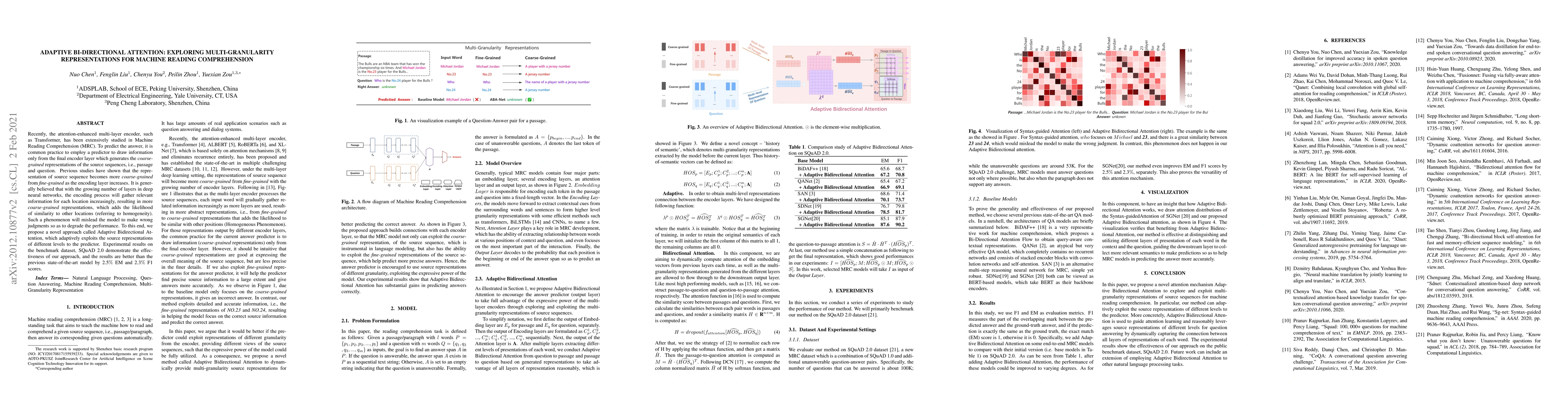 Recently, the attention-enhanced multi-layer encoder, such as Transformer, has been extensively studied in Machine Reading Comprehension (MRC). To predict the answer, it is common practice to employ a predictor to draw information only from the final encoder layer which generates the \textit{coarse-grained} representations of the source sequences, i.e., passage and question. Previous studies have shown that the representation of source sequence becomes more \textit{coarse-grained} from \textit{fine-grained} as the encoding layer increases. It is generally believed that with the growing number of layers in deep neural networks, the encoding process will gather relevant information for each location increasingly, resulting in more \textit{coarse-grained} representations, which adds the likelihood of similarity to other locations (referring to homogeneity). Such a phenomenon will mislead the model to make wrong judgments so as to degrade the performance. To this end, we propose a novel approach called Adaptive Bidirectional Attention, which adaptively exploits the source representations of different levels to the predictor. Experimental results on the benchmark dataset, SQuAD 2.0 demonstrate the effectiveness of our approach, and the results are better than the previous state-of-the-art model by 2.5$\%$ EM and 2.3$\%$ F1 scores.