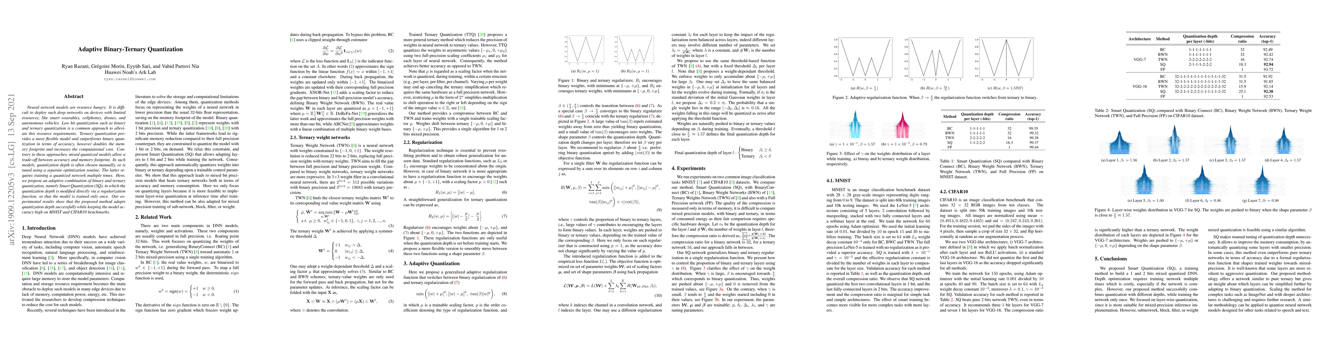 The paper introduces an adaptive regularization function that switches between binary and ternary regularization, enabling layer-wise quantization with a single trainable scaling factor.