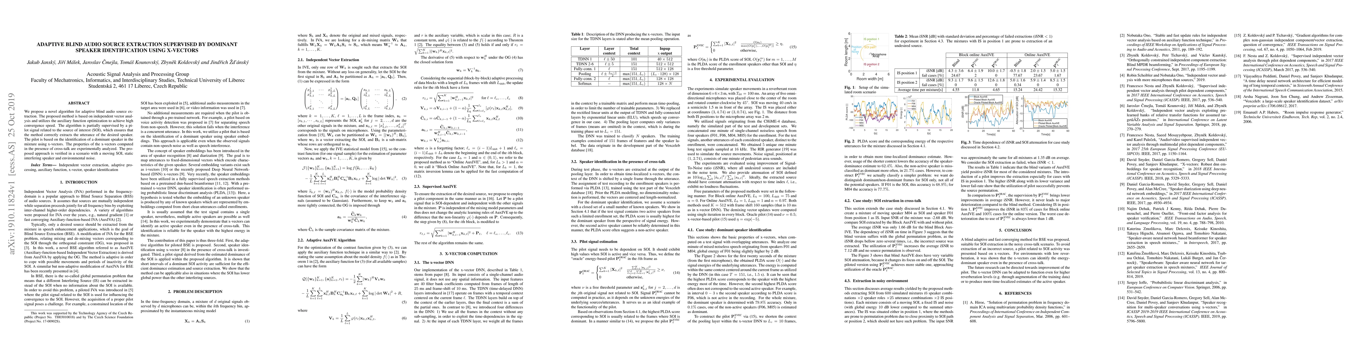 We propose a novel algorithm for adaptive blind audio source extraction. The proposed method is based on independent vector analysis and utilizes the auxiliary function optimization to achieve high convergence speed. The algorithm is partially supervised by a pilot signal related to the source of interest (SOI), which ensures that the method correctly extracts the utterance of the desired speaker. The pilot is based on the identification of a dominant speaker in the mixture using x-vectors. The properties of the x-vectors computed in the presence of cross-talk are experimentally analyzed. The proposed approach is verified in a scenario with a moving SOI, static interfering speaker, and environmental noise.