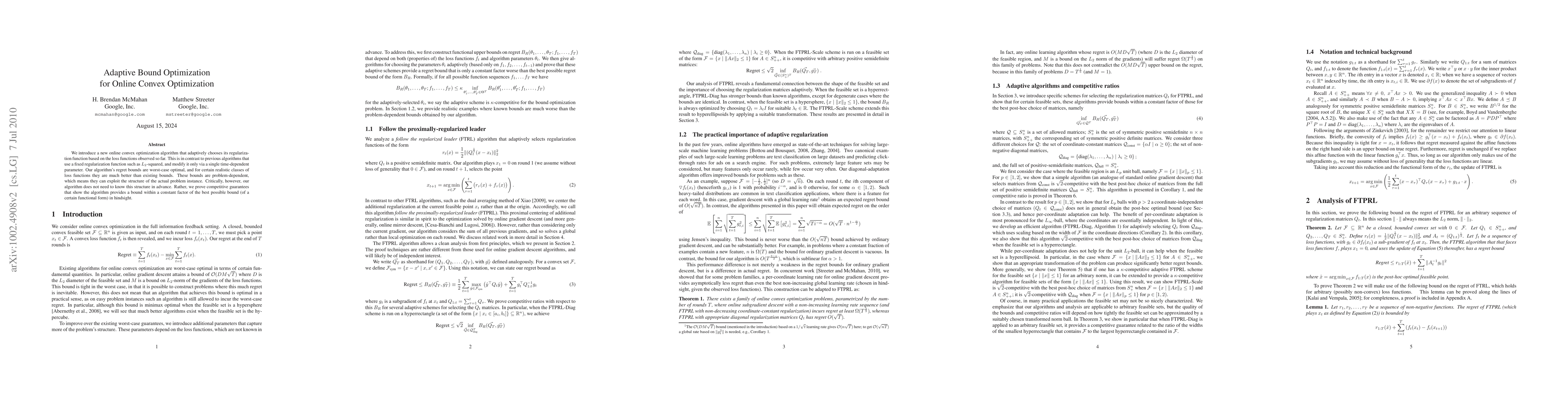 A new online convex optimization algorithm adapts its regularization function to improve regret bounds, achieving worst-case optimal performance with some problem-dependent gains.