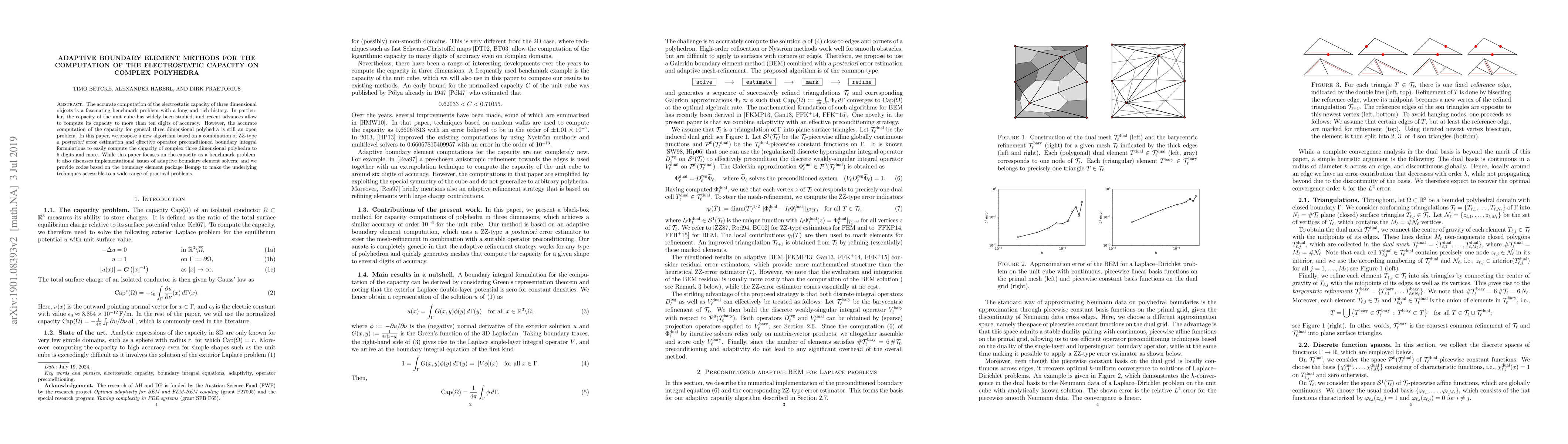 This paper introduces a new adaptive boundary element method to accurately compute the electrostatic capacity of complex three-dimensional polyhedra, employing ZZ-type error estimation and preconditioning techniques. The proposed method achieves five digits of accuracy and includes practical implementation details and code based on the Bempp package.
