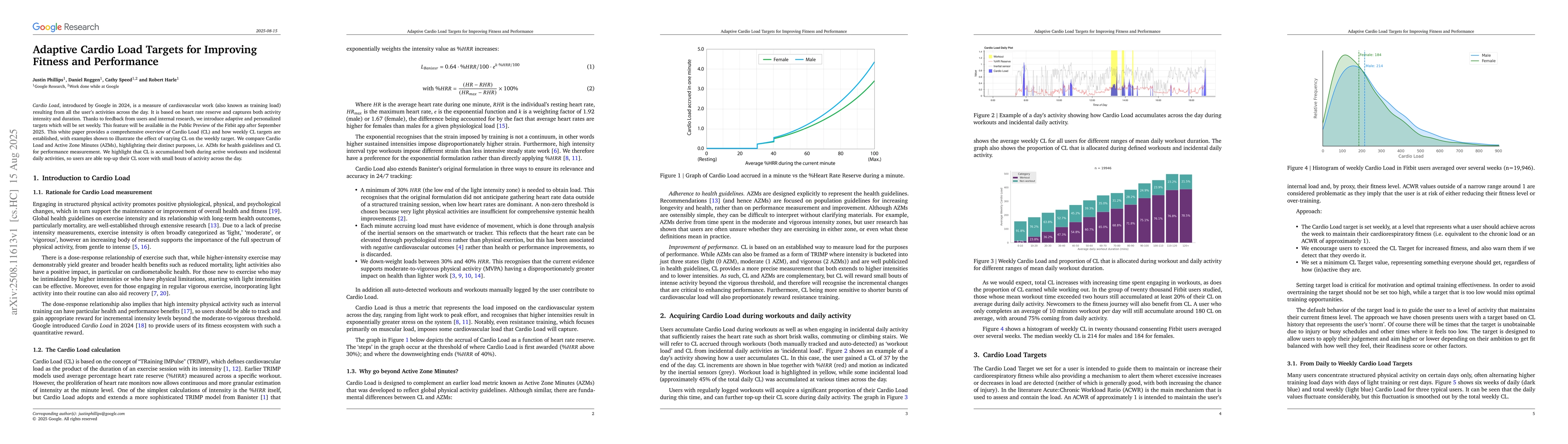 Cardio Load, introduced by Google in 2024, is a measure of cardiovascular work (also known as training load) resulting from all the user's activities across the day. It is based on heart rate reserve and captures both activity intensity and duration. Thanks to feedback from users and internal research, we introduce adaptive and personalized targets which will be set weekly. This feature will be available in the Public Preview of the Fitbit app after September 2025. This white paper provides a comprehensive overview of Cardio Load (CL) and how weekly CL targets are established, with examples shown to illustrate the effect of varying CL on the weekly target. We compare Cardio Load and Active Zone Minutes (AZMs), highlighting their distinct purposes, i.e. AZMs for health guidelines and CL for performance measurement. We highlight that CL is accumulated both during active workouts and incidental daily activities, so users are able top-up their CL score with small bouts of activity across the day.