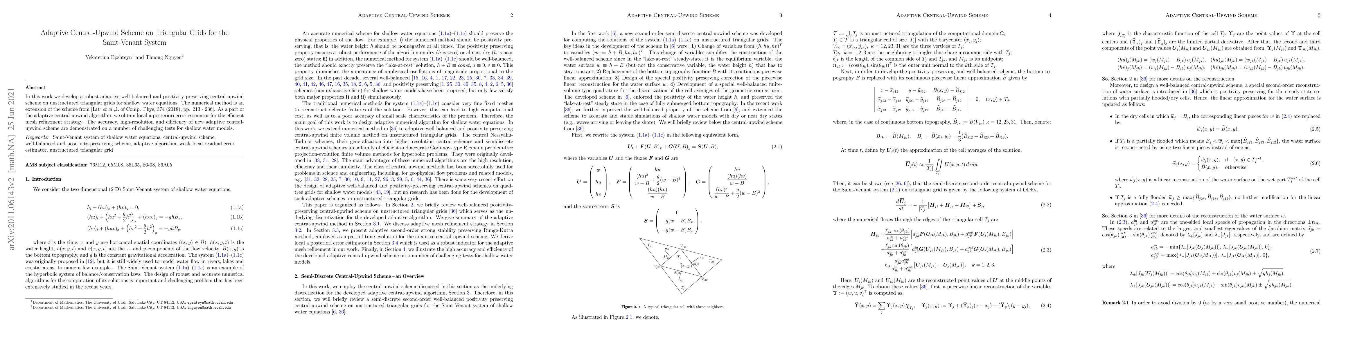 This paper develops an adaptive central-upwind scheme for solving the Saint-Venant shallow water equations on triangular grids, ensuring robustness, positivity, and well-balancing. The method includes a local a posteriori error estimator for adaptive mesh refinement, validated through high-resolution simulations of challenging shallow water scenarios.