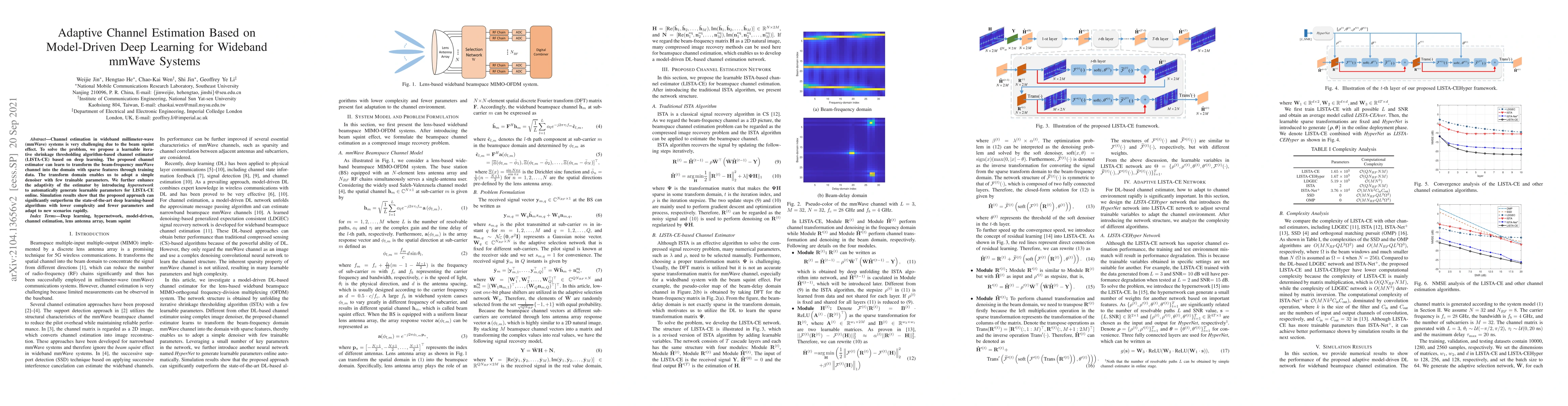 The paper proposes a deep learning-based channel estimator (LISTA-CE) for wideband mmWave systems to tackle the beam squint effect, utilizing an iterative shrinkage thresholding algorithm. The model enhances adaptivity with hypernetworks and demonstrates superior performance over existing methods with lower complexity and fewer parameters.