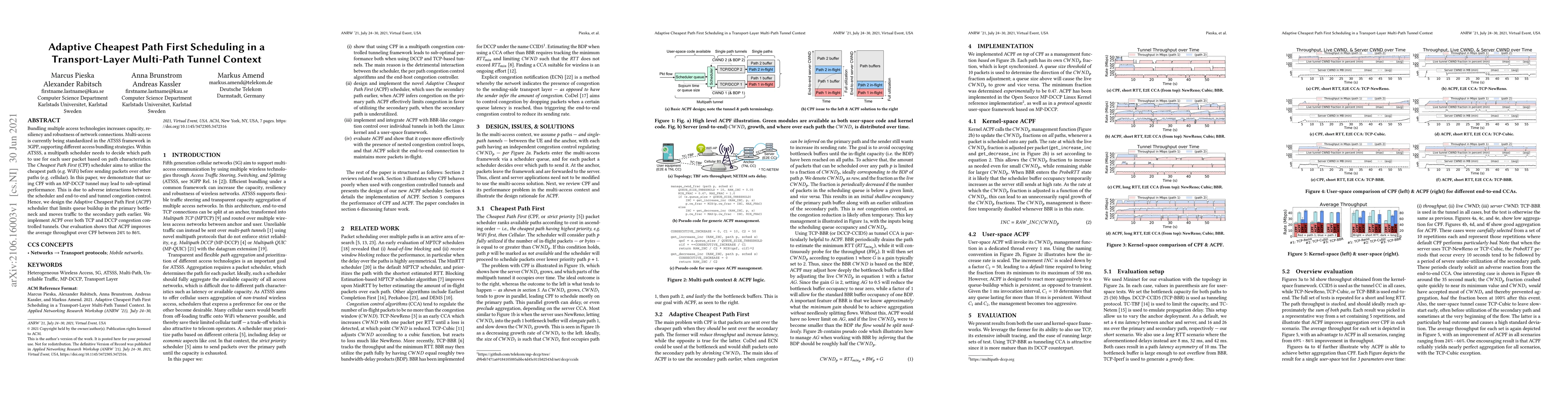 Bundling multiple access technologies increases capacity, resiliency and robustness of network connections. Multi-access is currently being standardized in the ATSSS framework in 3GPP, supporting different access bundling strategies. Within ATSSS, a multipath scheduler needs to decide which path to use for each user packet based on path characteristics. The Cheapest Path First (CPF) scheduler aims to utilize the cheapest path (e.g. WiFi) before sending packets over other paths (e.g. cellular). In this paper, we demonstrate that using CPF with an MP-DCCP tunnel may lead to sub-optimal performance. This is due to adverse interactions between the scheduler and end-to-end and tunnel congestion control. Hence, we design the Adaptive Cheapest Path First (ACPF) scheduler that limits queue buildup in the primary bottleneck and moves traffic to the secondary path earlier. We implement ACPF over both TCP and DCCP congestion controlled tunnels. Our evaluation shows that ACPF improves the average throughput over CPF between 24% to 86%.