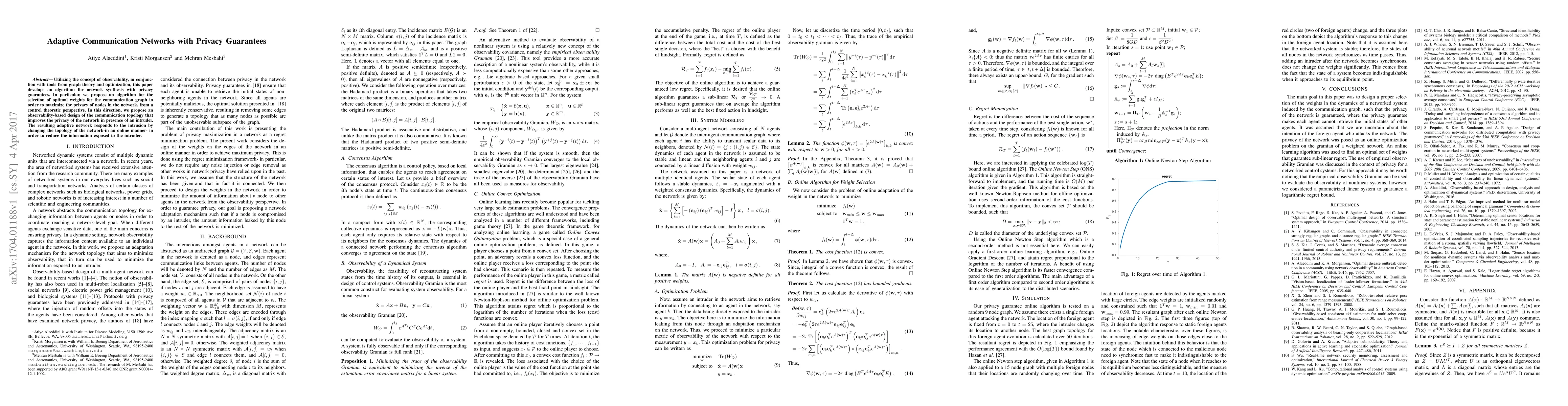 Utilizing the concept of observability, in conjunction with tools from graph theory and optimization, this paper develops an algorithm for network synthesis with privacy guarantees. In particular, we propose an algorithm for the selection of optimal weights for the communication graph in order to maximize the privacy of nodes in the network, from a control theoretic perspective. In this direction, we propose an observability-based design of the communication topology that improves the privacy of the network in presence of an intruder. The resulting adaptive network responds to the intrusion by changing the topology of the network-in an online manner- in order to reduce the information exposed to the intruder.