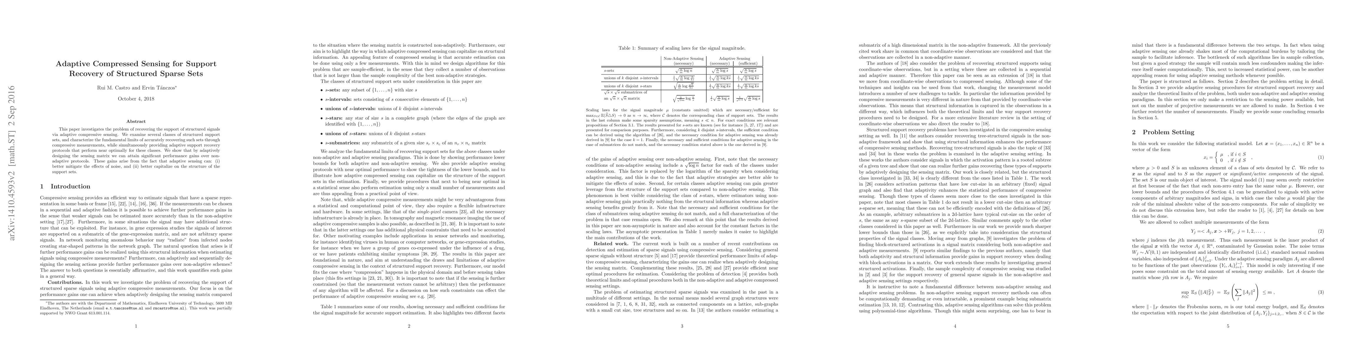This paper explores adaptive compressed sensing techniques for recovering structured sparse signal supports, demonstrating significant performance improvements over non-adaptive methods by better mitigating noise and leveraging support set structure. The study characterizes the fundamental limits of accurate recovery and provides adaptive protocols that perform near optimally.
