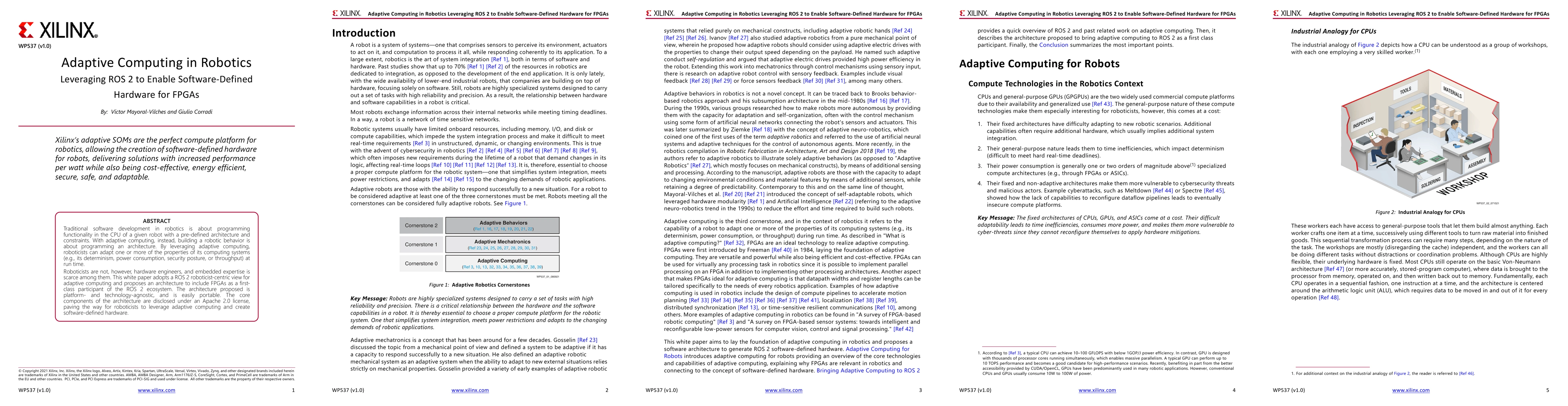 Traditional software development in robotics is about programming functionality in the CPU of a given robot with a pre-defined architecture and constraints. With adaptive computing, instead, building a robotic behavior is about programming an architecture. By leveraging adaptive computing, roboticists can adapt one or more of the properties of its computing systems (e.g. its determinism, power consumption, security posture, or throughput) at run time. Roboticists are not, however, hardware engineers, and embedded expertise is scarce among them. This white paper adopts a ROS 2 roboticist-centric view for adaptive computing and proposes an architecture to include FPGAs as a first-class participant of the ROS 2 ecosystem. The architecture proposed is platform- and technology-agnostic, and is easily portable. The core components of the architecture are disclosed under an Apache 2.0 license, paving the way for roboticists to leverage adaptive computing and create software-defined hardware.