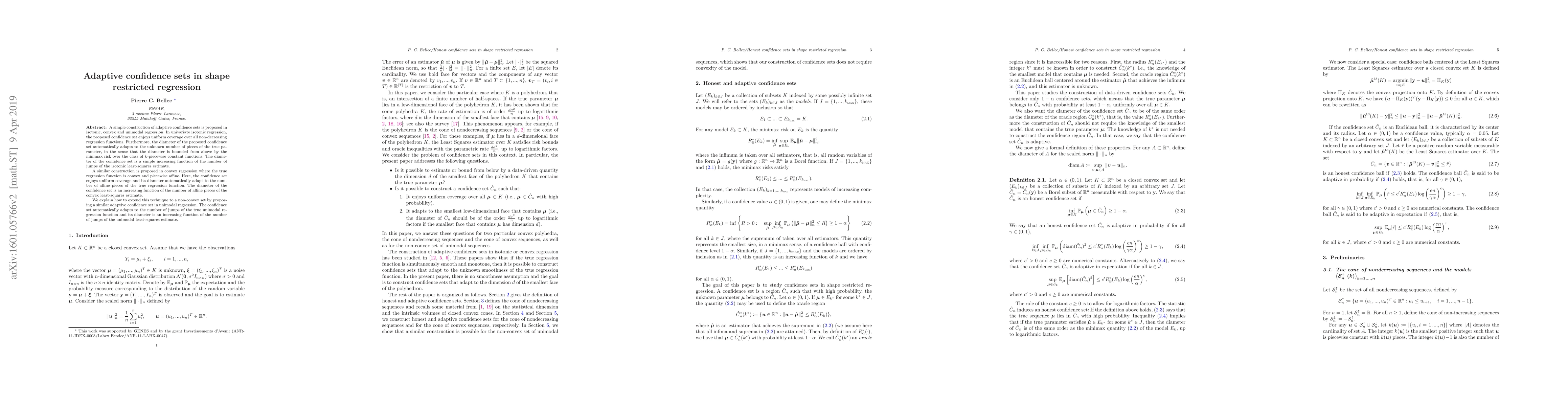 A simple construction of adaptive confidence sets is proposed in isotonic, convex and unimodal regression. In univariate isotonic regression, the proposed confidence set enjoys uniform coverage over all non-decreasing regression functions. Furthermore, the diameter of the proposed confidence set automatically adapts to the unknown number of pieces of the true parameter, in the sense that the diameter is bounded from above by the minimax risk over the class of $k$-piecewise constant functions. The diameter of the confidence set is a simple increasing function of the number of jumps of the isotonic least-squares estimate. A similar construction is proposed in convex regression where the true regression function is convex and piecewise affine. Here, the confidence set enjoys uniform coverage and its diameter automatically adapt to the number of affine pieces of the true regression function. The diameter of the confidence set is an increasing function of the number of affine pieces of the convex least-squares estimate. We explain how to extend this technique to a non-convex set by proposing a similar adaptive confidence set in unimodal regression. The confidence set automatically adapts to the number of jumps of the true unimodal regression function and its diameter is an increasing function of the number of jumps of the unimodal least-squares estimate.