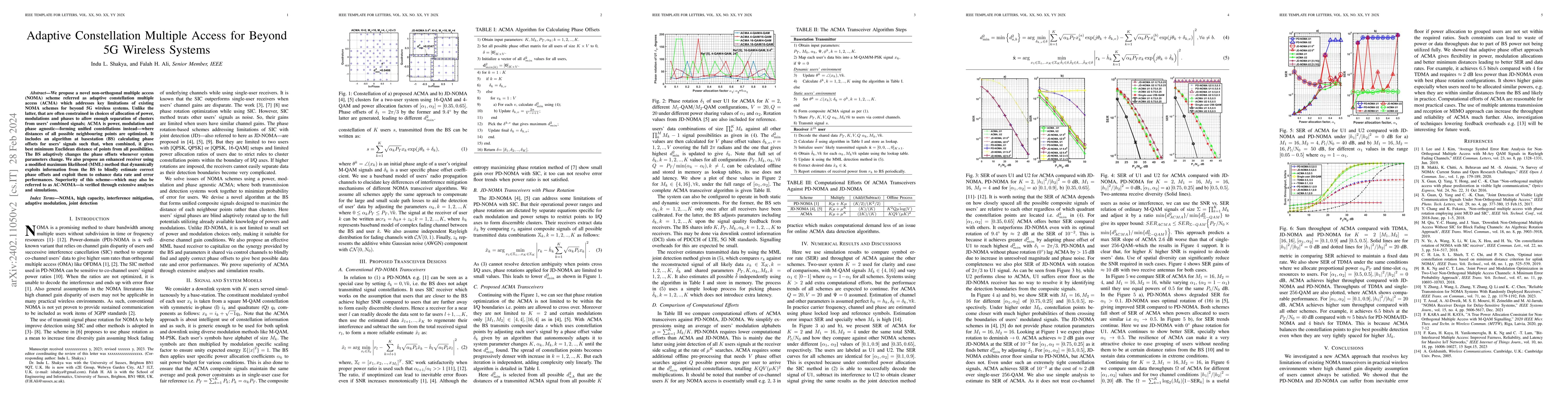 The paper proposes adaptive constellation multiple access (ACMA), a novel nonorthogonal multiple access scheme for beyond 5G systems that optimizes user signal separation by dynamically adjusting power, modulation, and phase allocations. An enhanced receiver utilizing a modified maximum likelihood method improves data rate and error performance, outperforming existing NOMA schemes.