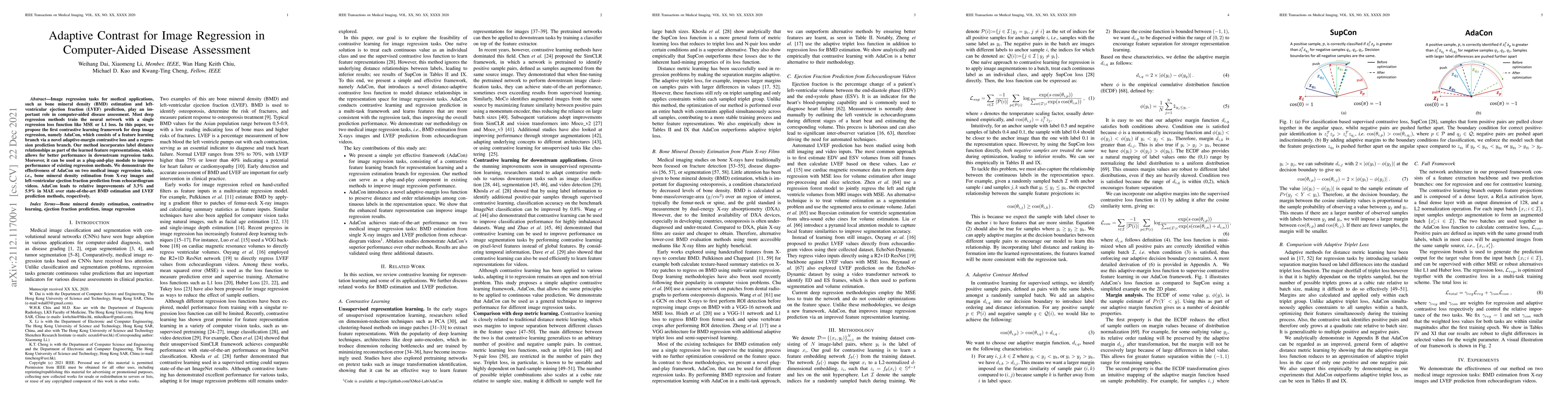 A new method called AdaCon improves medical image regression tasks like bone density estimation and heart function prediction with a 3.3% and 5.9% increase in accuracy respectively.